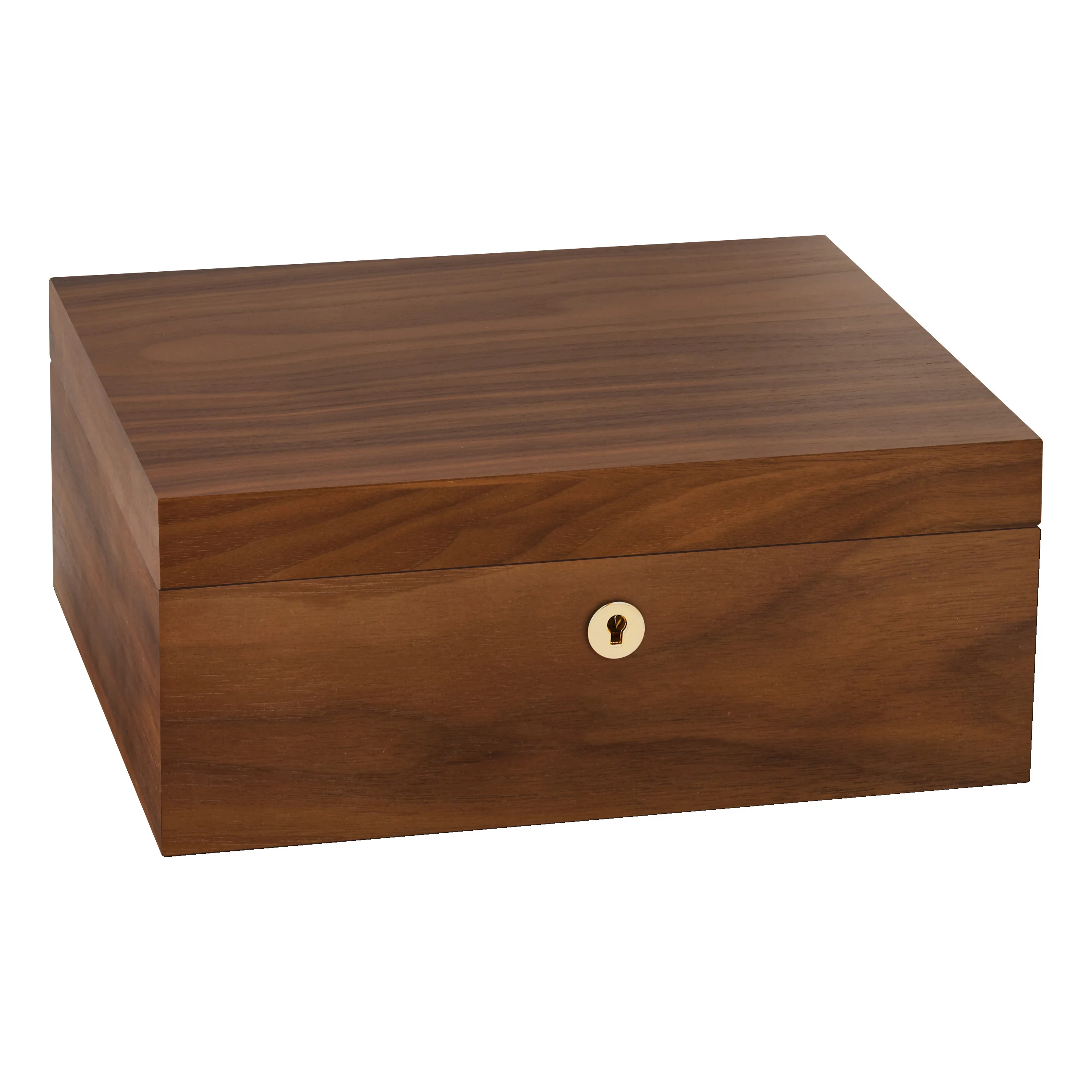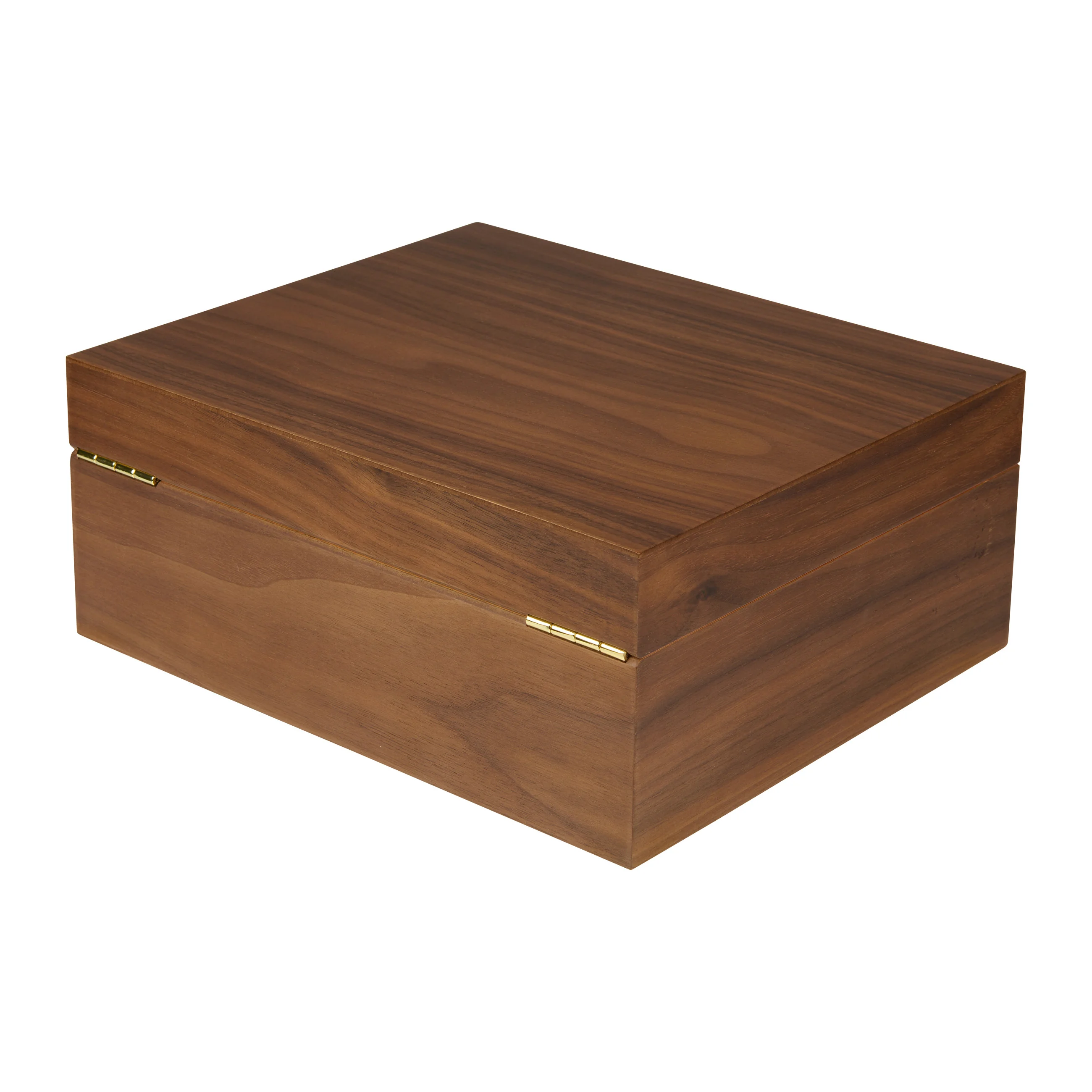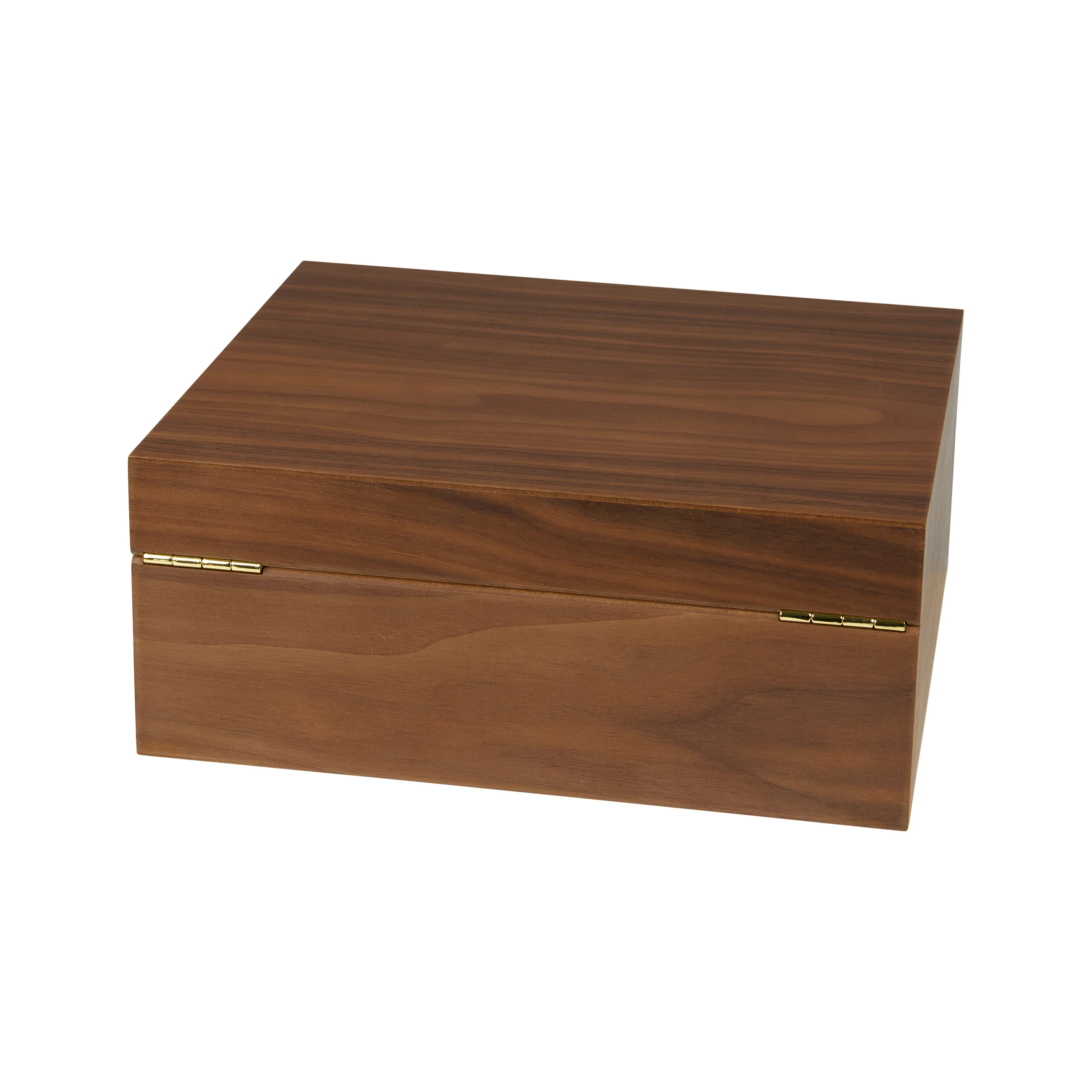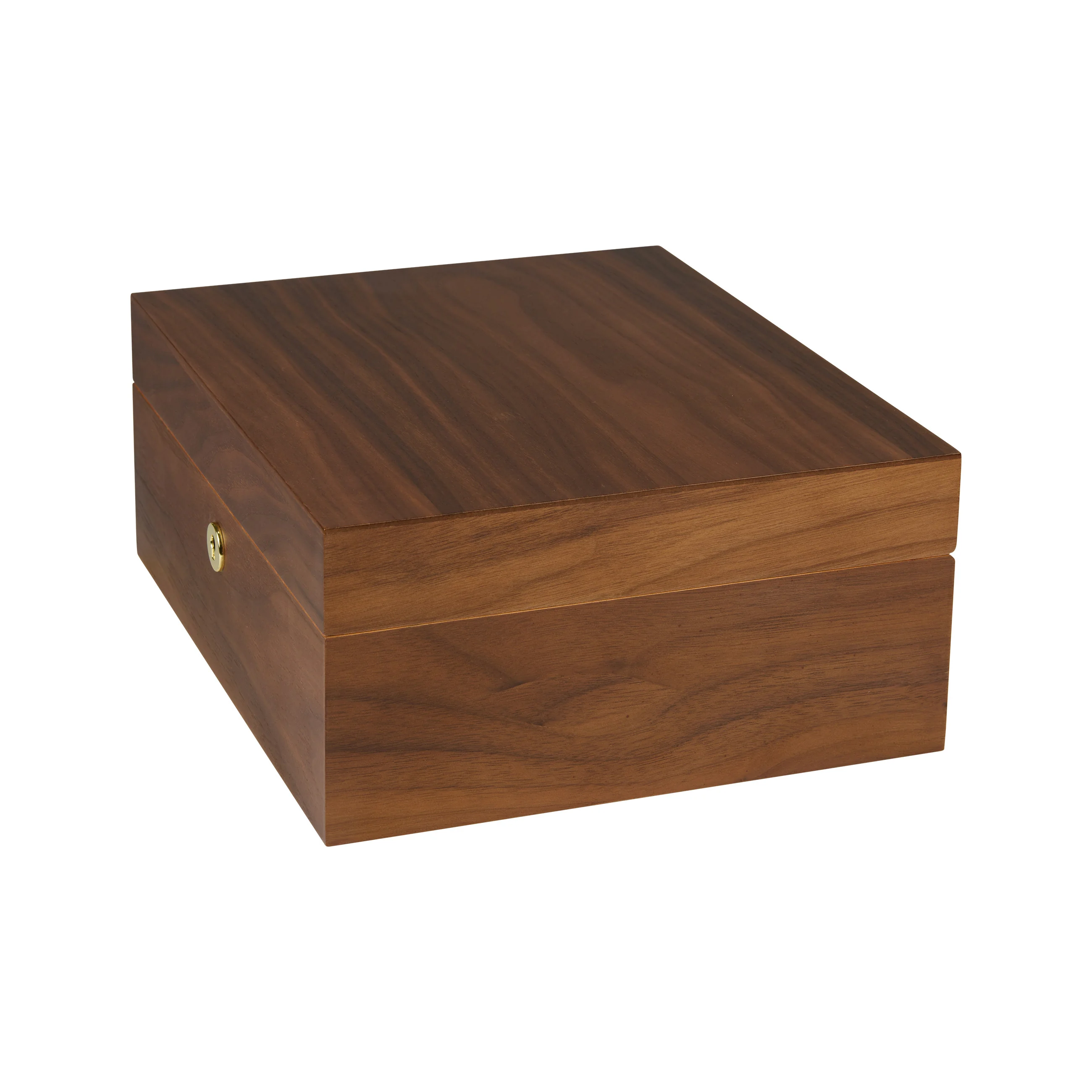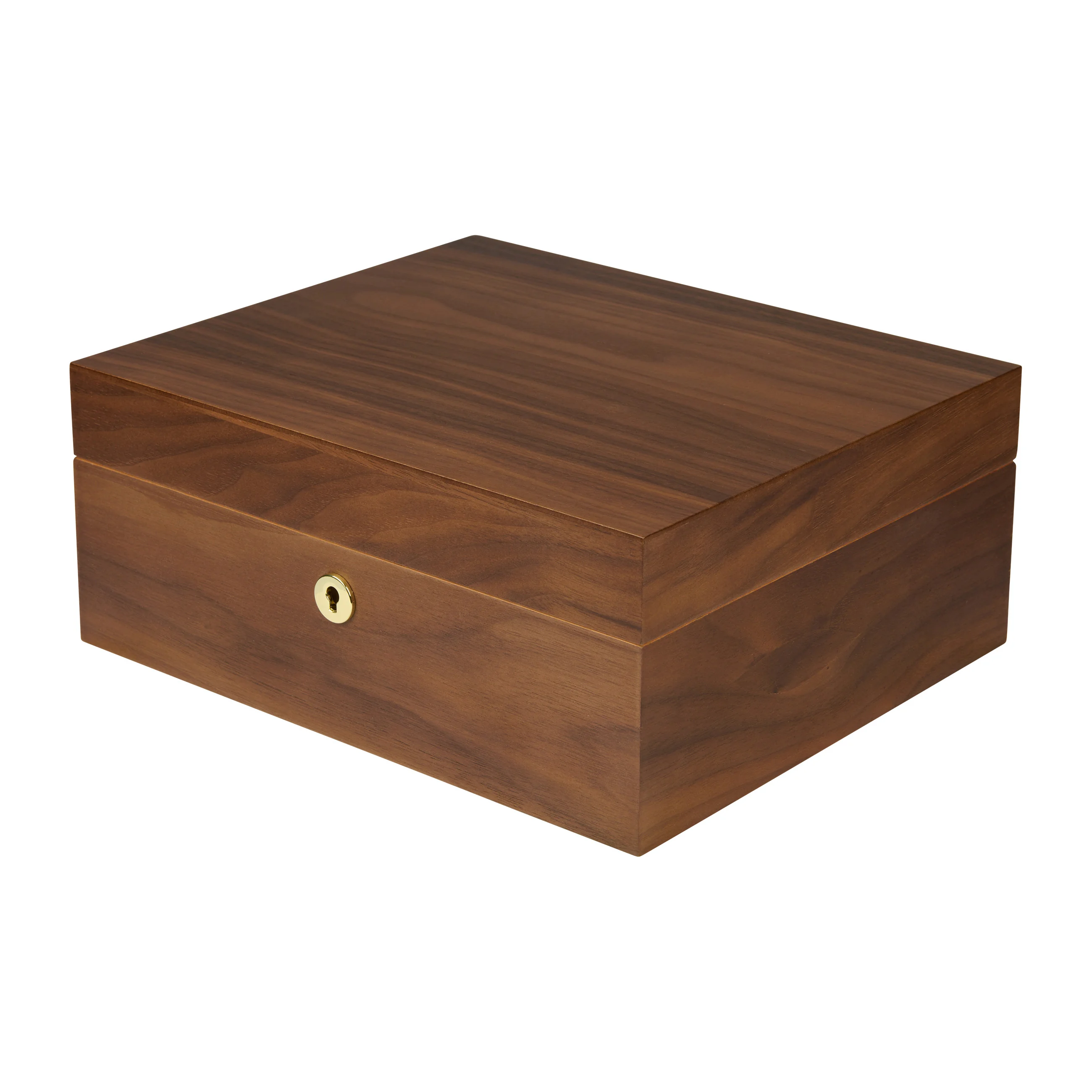 Het walnotenhout valt op door zijn karakteristieke nerf met warme tot donkerbruine tinten. Dankzij zijn warme en natuurlijke uitstraling past de humidor bijna overal bij. Middelgrote humidors kunnen tot 75 sigaren bevatten, dus genoeg ruimte voor uw sigarencollectie.