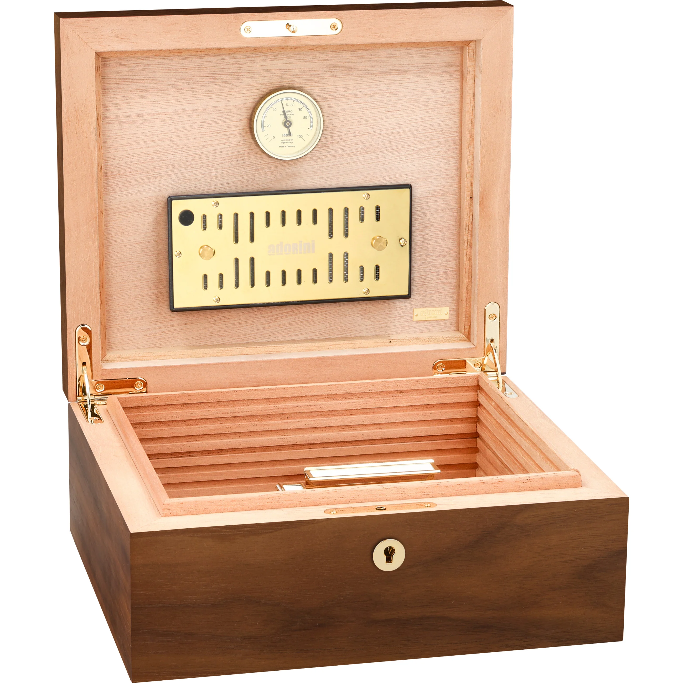 adorini is een van 's werelds toonaangevende humidormerken. De producten worden gekenmerkt door hoogwaardige materialen, een verfijnd ontwerp en innovatieve functionaliteit. Nauwkeurige hygrometers en bevochtigingssystemen van adorini zijn ook te vinden in 's werelds meest exclusieve humidors. Sigarenliefhebbers, restauranthouders en verzamelaars waarderen adorini om zijn duurzame kwaliteit, stijlvolle vakmanschap en betrouwbare precisie.