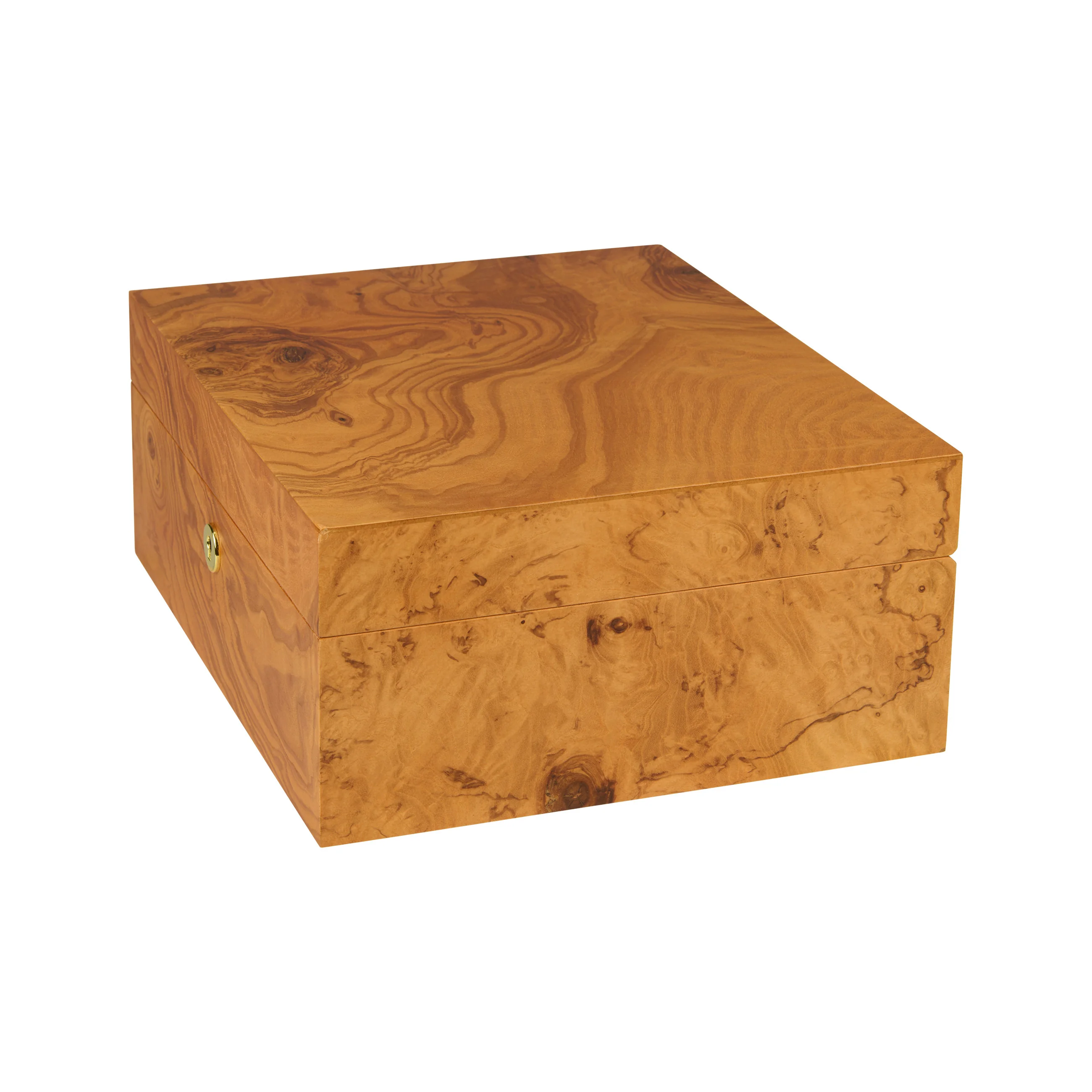 Met de horizontale en verticale verdelers en de labelclips kun je de binnenkant nog stijlvoller indelen en verdelen. De binnenkant is versierd met gouden elementen, zoals het slot en de scharnieren, en geeft samen met het olijfhouten fineer een harmonieuze totaalindruk.