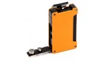 Opvallende oranje coating op een zwart geschilderde behuizing