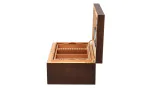 De Matera Deluxe valt allereerst op door zijn matte afwerking met gekorreld walnootfineer, welke niet alleen visueel aantrekkelijk is maar ook prettig aanvoelt. Een slot en sleutel voegen een vleugje weelde toe aan de wonderlijk ingetogen buitenkant, terwijl wanneer het deksel opengaat er een geraffineerd interieur vol met vernieuwende accenten wordt onthuld. Een bekleding van gestoomd Spaans cederfineer is versierd met adorini's RibTech ventilatieribbels, die de luchtcirculatie in de humidor helpen verbeteren.