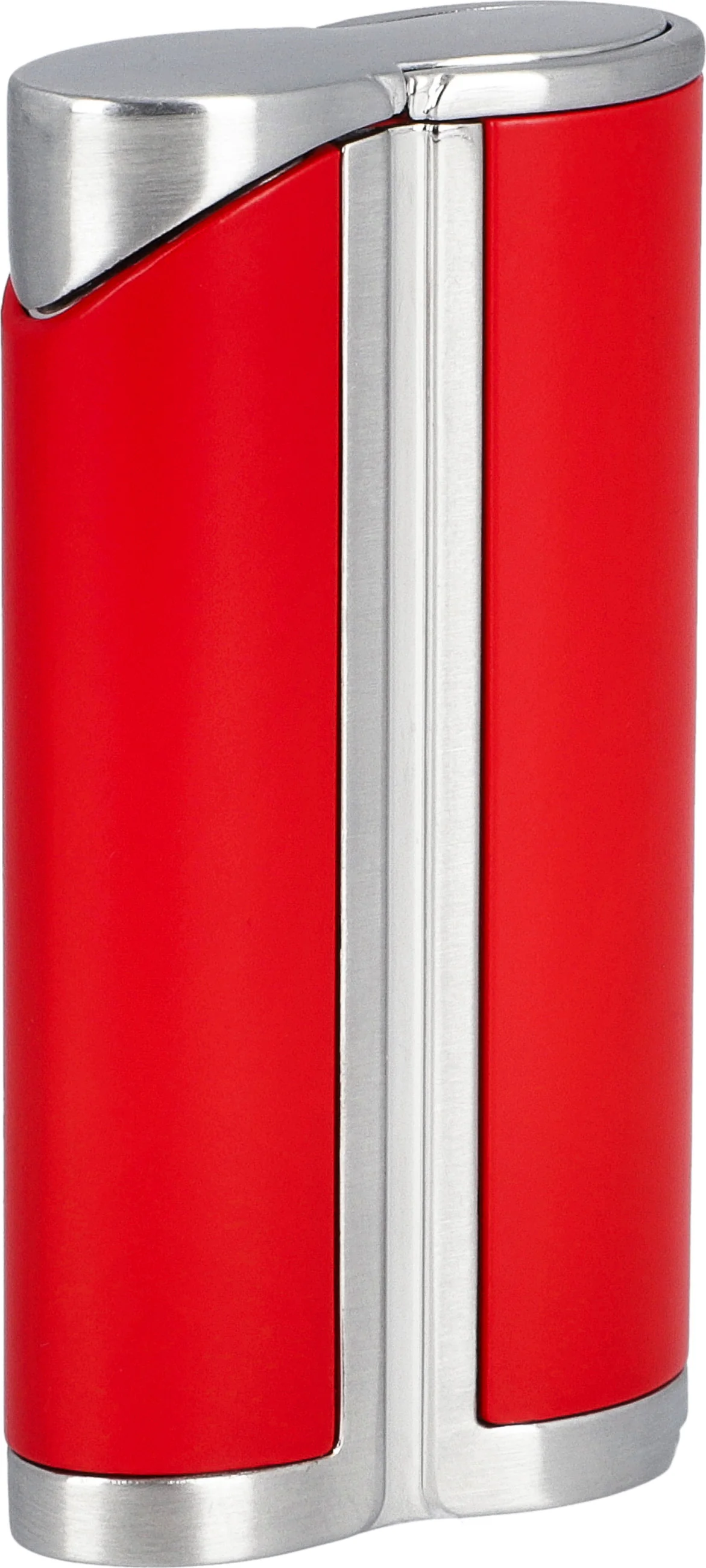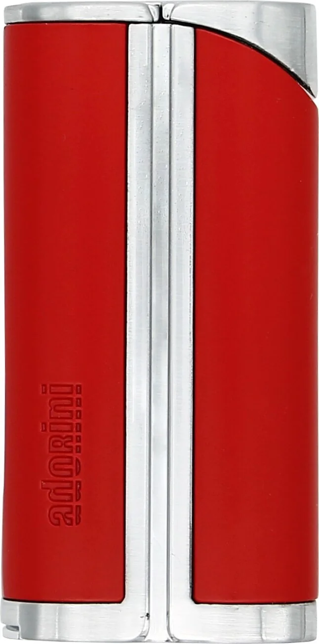 adorini Single Jet Curve Aansteker Rood / Satijn Zilver inclusief Sigarenknijper