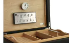Een precieze en vooraf gekalibreerde haarhygrometer, gemaakt in Duitsland, maakt een nauwkeurige controle van de luchtvochtigheid mogelijk. Beide elementen kunnen magnetisch, handig en ruimtebesparend aan het deksel van de humidor worden bevestigd.
