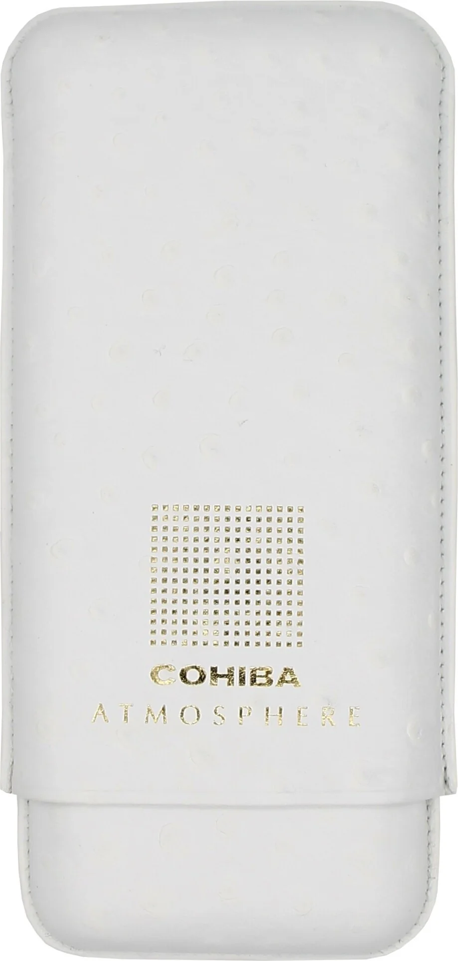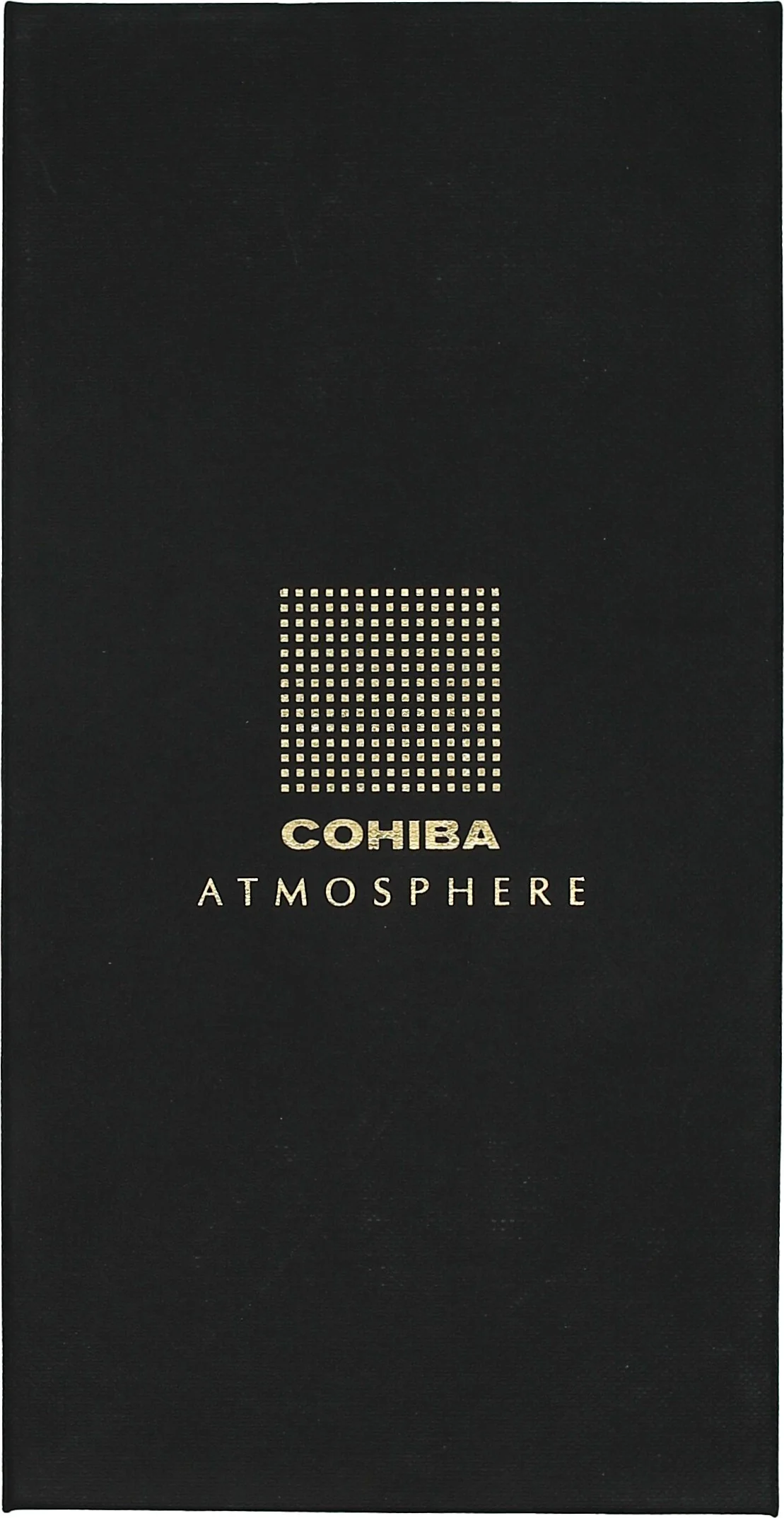 Op de voorkant zorgt de elegante gouden Cohiba Atmosphere logo-opdruk voor onmiddellijke herkenning en geeft de etui een uitstraling van luxe en authenticiteit.