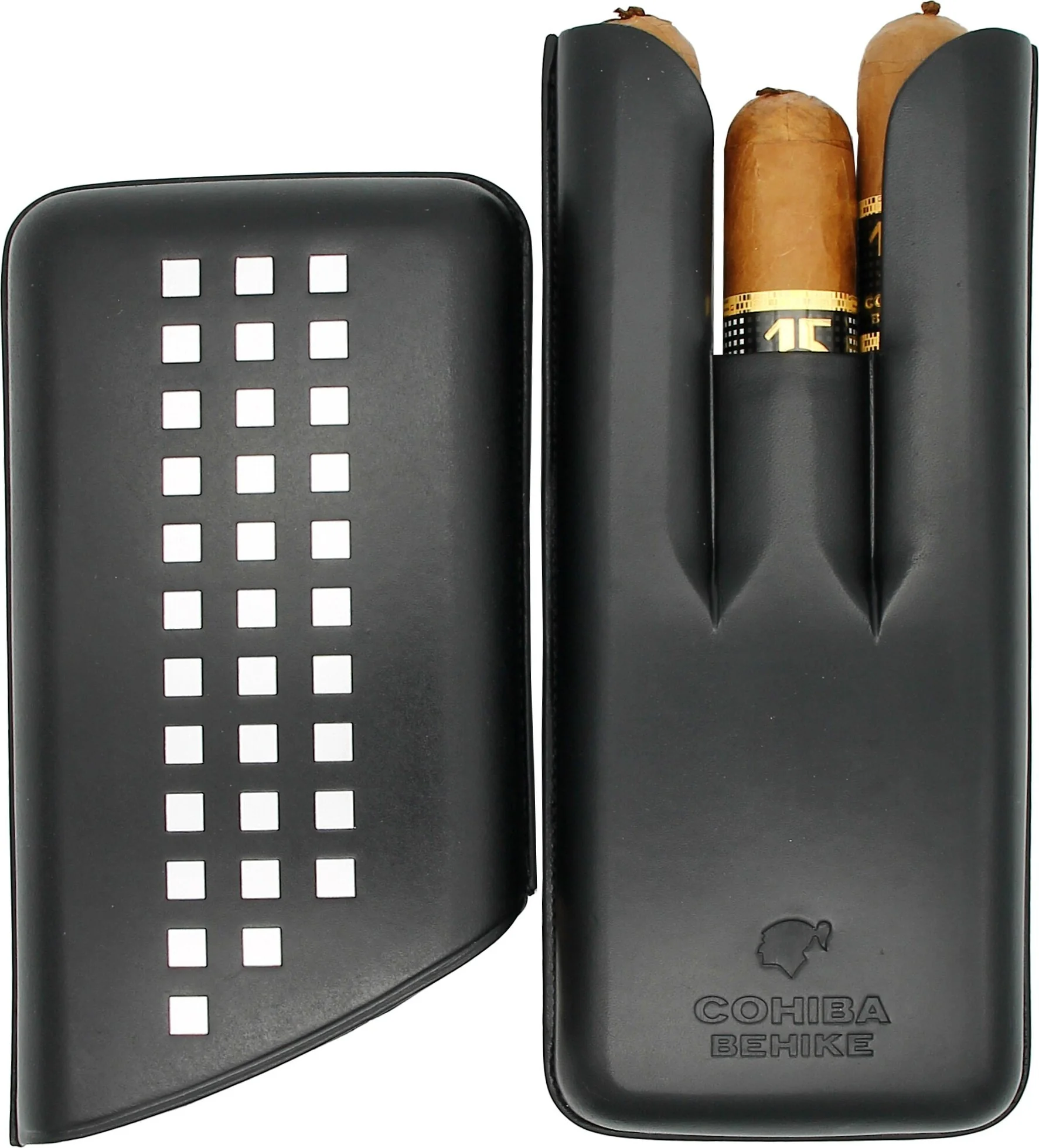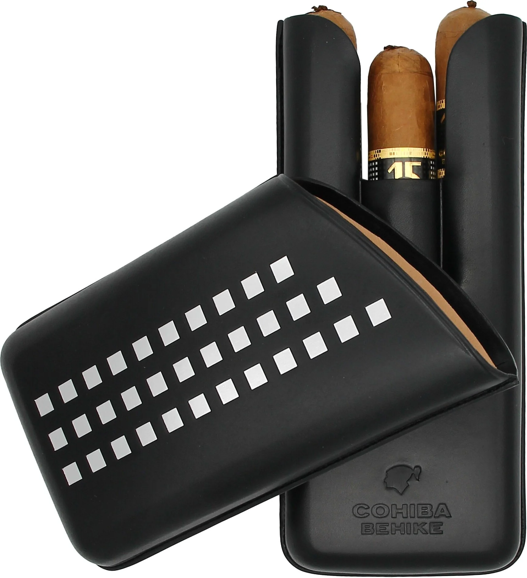 Cohiba Behike Drievoudige Sigaar Leren Etui Zwart
