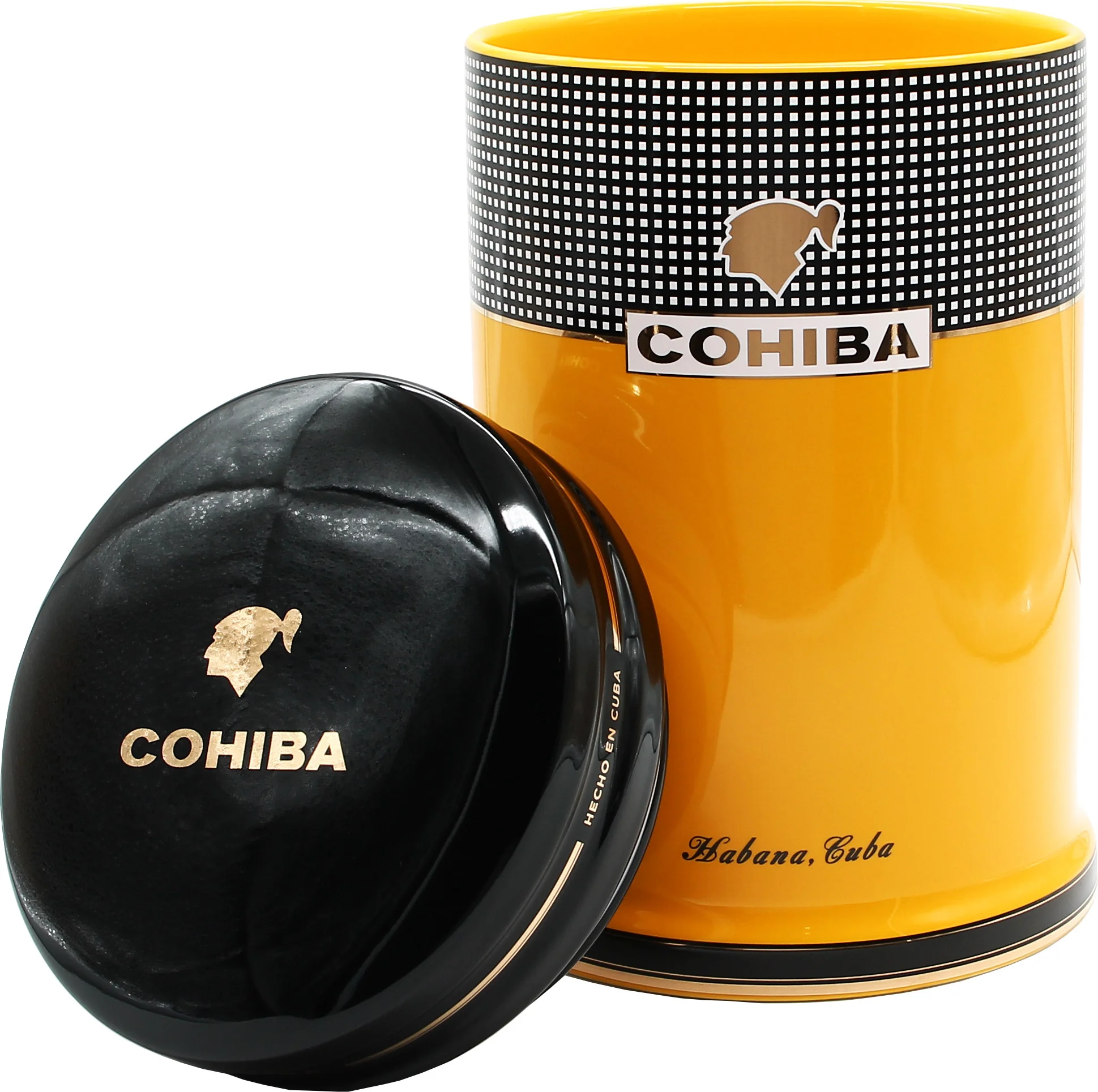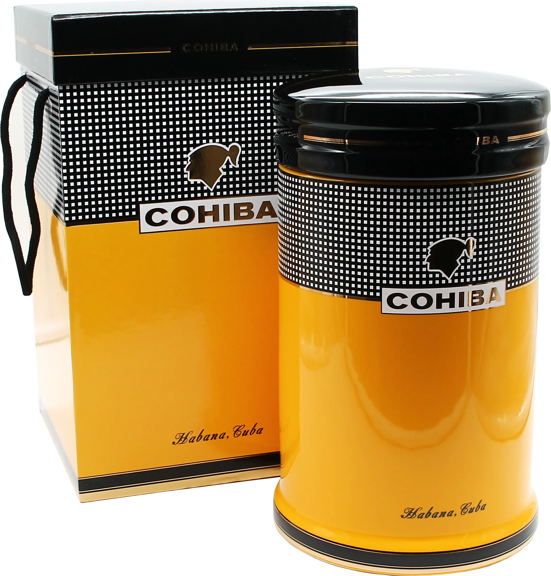De Cohiba Porcelain Jar is een functionele en aantrekkelijk ontworpen opbergdoos van het bekende Cubaanse sigarenmerk Cohiba. Het heeft de kenmerkende kleuren van het merk: geel, zwart en wit, aangevuld met subtiele gouden accenten. Het samenspel van deze elementen zorgt voor een duidelijke herkenning van de stijl van het merk zonder opdringerig te zijn.