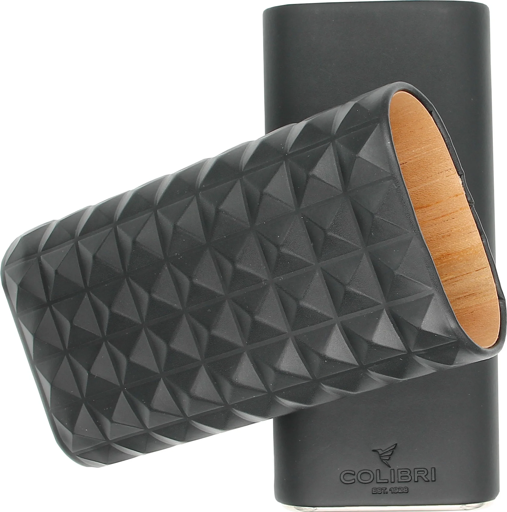 De koker heeft een tweedelig, uitschuifbaar schuifmechanisme in elegant zwart. De verchroomde boven- en onderkant geven de sigarenkoker een opvallend karakter. De voorkant van het onderste gedeelte is voorzien van een subtiel reliëf van het Colibri logo, wat het hoogwaardige uiterlijk perfect aanvult.