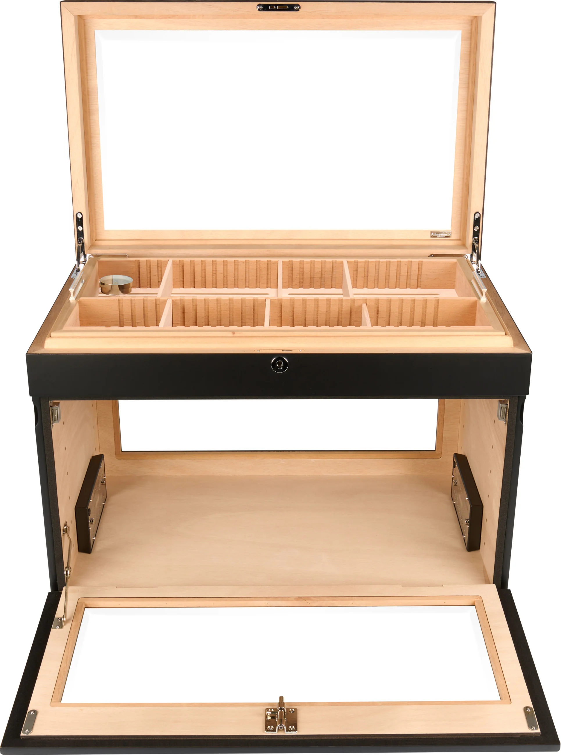 Le Portico peut parfaitement être équipé d'un humidificateur électronique tel que le Cigar Heaven d'adorini pour assurer un contrôle précis de l'humidité même en cas d'ouverture fréquente.
