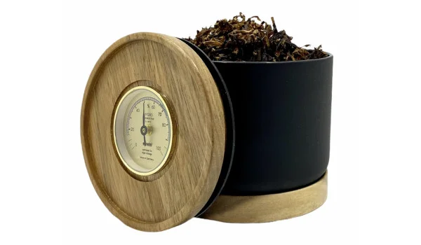 - Le couvercle est équipé d'un hygromètre à cheveux adorini de fabrication allemande qui vous indique toujours l'humidité exacte à l'intérieur du pot.