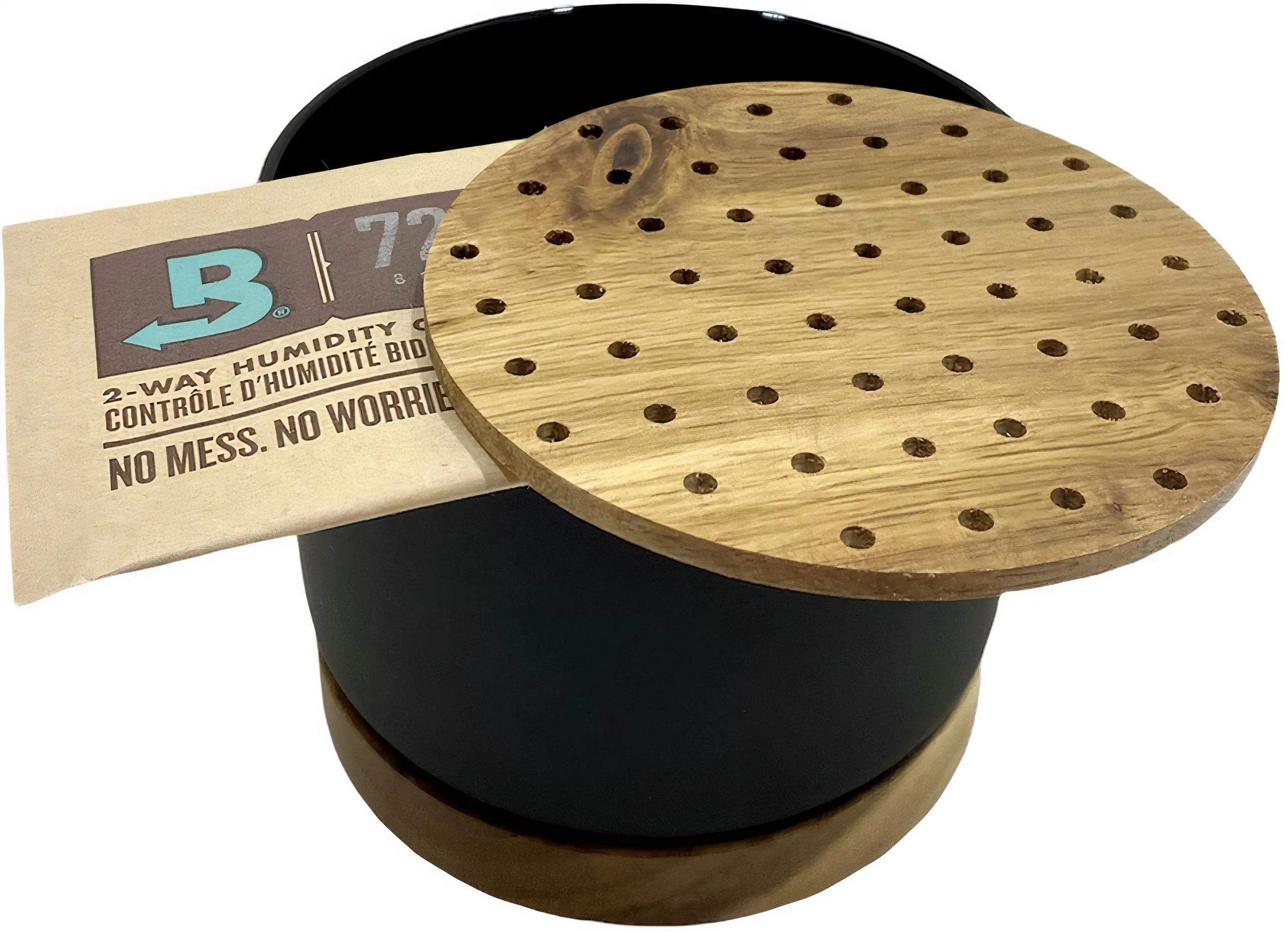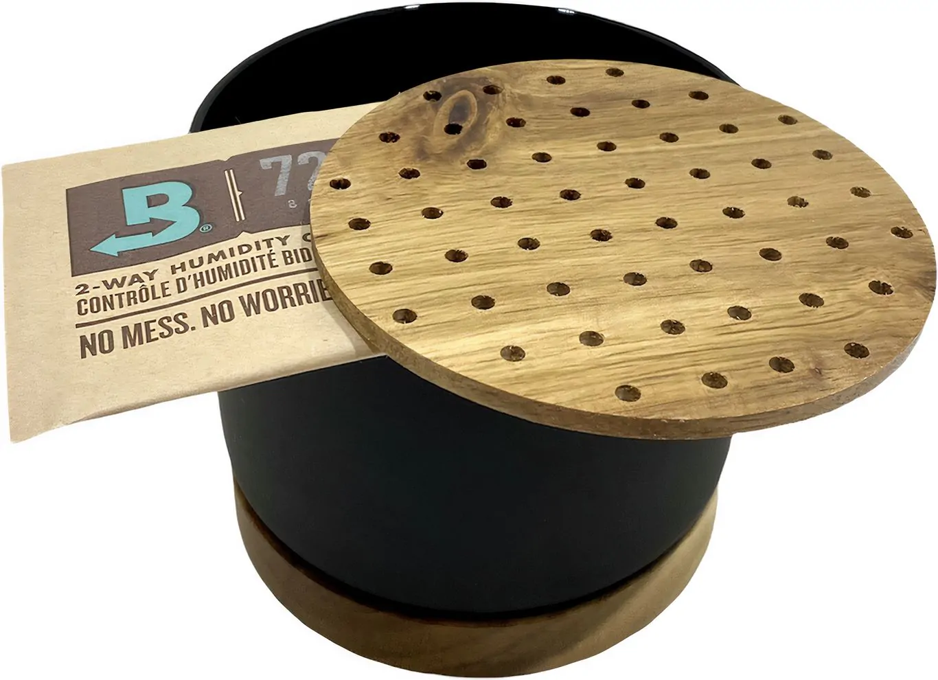- En dessous, un tampon humidificateur Boveda de 8 grammes est parfaitement adapté.