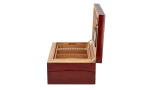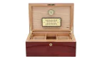 Un vibrant bois de merisier multi-laqué < span> finish attire l'attention sur cet humidificateur qui présente un corpus robuste pour la durabilité et la résistance, ainsi que des charnières à quadrant plaquées or 24 carats robustes pour une utilisation douce et durable du couvercle. Un ensemble de serrures et de clés ajoute une touche de sophistication à l'humidor tout en gardant son précieux contenu en sécurité. Le cèdre espagnol tapisse l'intérieur avec la caractéristique supplémentaire des nervures de ventilation RibTech d'adorini , qui aident à augmenter le flux d'air dans la cave à cigares pour assurer jusqu'à 150 Corona- les cigares de taille reçoivent le bon niveau d'humidité.
