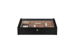 La finition laquée noire accentue magnifiquement les lignes épurées de la cave à cigares de construction solide, qui présente une partie supérieure inclinée avec un verrouillage gracieusement conçu couvercle en verre idéal pour une visualisation sur le comptoir. La doublure en cèdre espagnol cuit à la vapeur présente les nervures de ventilation innovantes Adorini RibTech, qui aident à augmenter le flux d'air, garantissant que plus de 75 cigares Corona sont correctement et uniformément humidifiés. Avec cinq séparateurs verticaux et cinq horizontaux, le système de séparateurs d'Adorini avec des clips d'étiquettes de séparateur offre la flexibilité de garder les cigares organisés d'une multitude de façons différentes, contribuant ainsi à rendre l'affichage Vega Deluxe humidificateur un favori pour les lieux d'affaires ou de salon.
