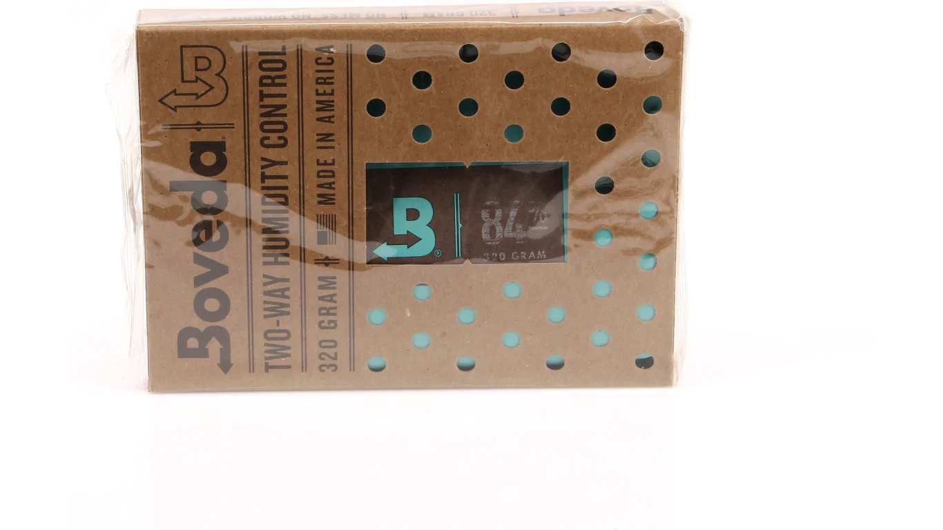 Pour les humidors plus grands, cela peut prendre 5, 6 , ou même plus des packs de 60g pour atteindre les niveaux nécessaires. Ce problème a été résolu par l'équipe de Boveda avec l'ajout du paquet de 320g . Optimisé pour les caves à cigares pouvant contenir entre 50 et 150 cigares , ce emballage extra-large offre le contrôle d’humidité équivalent de cinq sachets de 60 g. Mettez-le simplement dans votre cave vide, attendez deux semaines, et vous aurez une cave entièrement assaisonnée prête pour vos cigares.