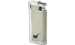 Un briquet à pipe pratique en champagne avec des éléments décoratifs argentés brillants - idéal pour les fumeurs de pipe. L'empreinte de la pipe sur le boîtier rend le briquet immédiatement reconnaissable en tant que tel. L'allumage latéral permet d'allumer la pipe facilement et en toute sécurité, sans se brûler les doigts.