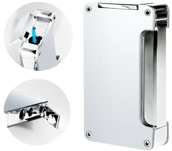Disponible dans une variété de couleurs, le briquet Jet White d'adorini se démarque avec son corps solide en acier inoxydable recouvert de panneaux avant et arrière blancs chatoyants qui rejoignent des accents chromés pour un look qui crie tout simplement l'élégance et la sophistication.