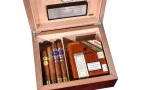 Cette cave à cigares moderne et fonctionnelle de la série adorini Basic en taille M impressionne par sa finition mate, son beau grain et sa polyvalence. Pouvant contenir environ 75 cigares ou des boîtes de cigares plus petites, il offre une solution idéale pour conserver vos cigares en toute sécurité. Il est livré avec un hygromètre analogique et un humidificateur passif à éponge. L'hygromètre mesure l'humidité à l'aide d'une bobine métallique et, avec l'humidificateur, il est fixé de manière magnétique et flexible au couvercle de la cave. L'intérieur de la cave à cigares est doté de charnières en argent mat et d'une lèvre d'étanchéité particulièrement solide qui garantit une rétention optimale de l'humidité. Une cloison verticale permet de compartimenter davantage l'intérieur.
