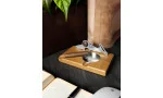 - L'emplacement prévu pour les ciseaux dans le socle en bois permet de tenir les ciseaux de manière flexible ou permanente. Un clou est inclus pour fixer définitivement les ciseaux dans le support si nécessaire - idéal pour une utilisation dans les restaurants ou les salons de cigares.