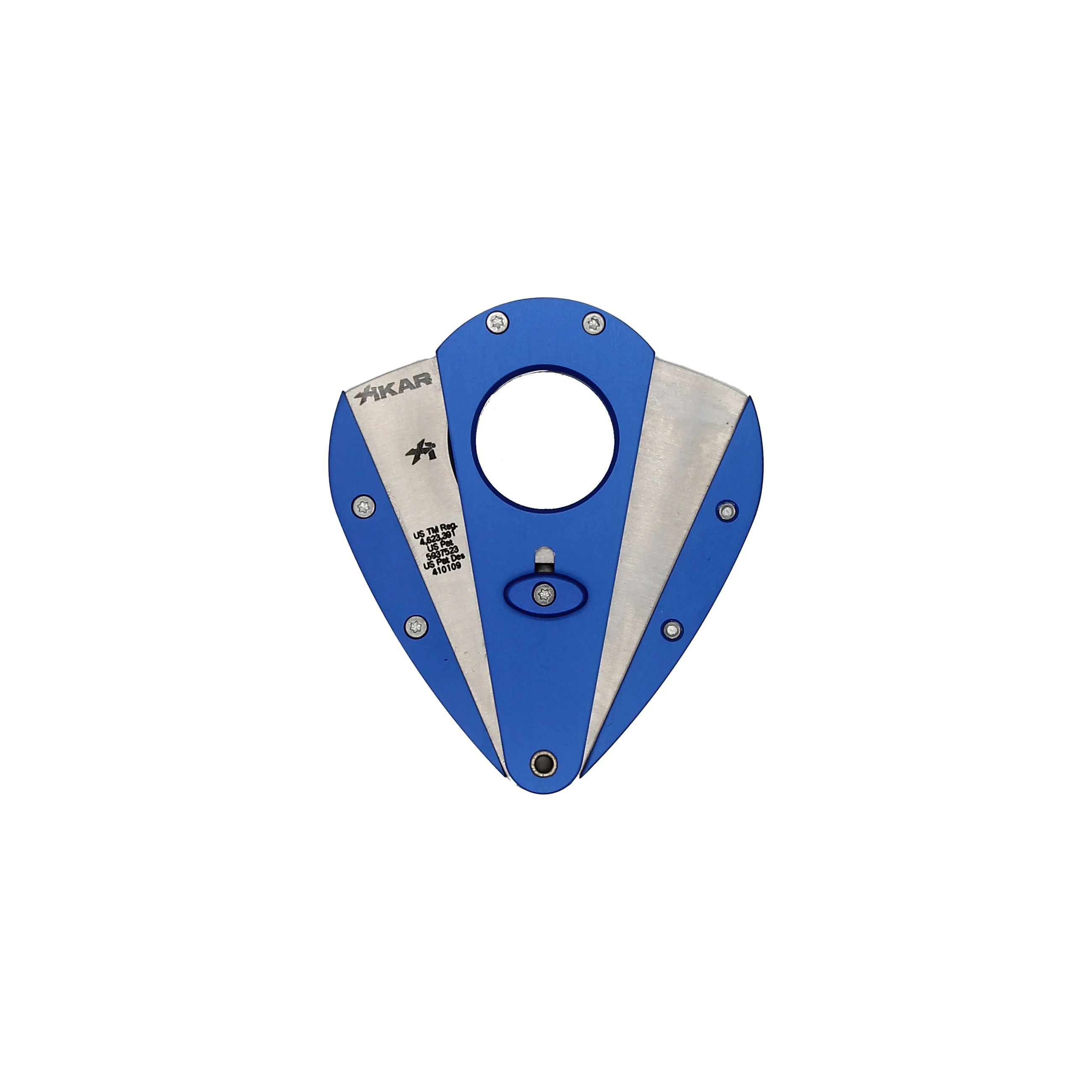 La construction en aluminium anodisé de ce couteau à double lame Xikar Xi1 particulier est colorée dans un bleu azur accrocheur. Ce qui, lorsqu'il est combiné avec les lames en acier inoxydable brillant, contrairement à sa forme ergonomique en forme de larme, ne manquera pas de vous faire sourire.