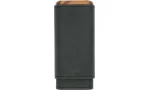 L'étui luxueux est magnifiquement recouvert du meilleur cuir suédé noir d'Inde, qui évoluera à chaque utilisation, déployant progressivement son caractère unique. Du bois véritable orne le haut du couvercle et le bas de la mallette, attirant le regard avec une magnifique finition laquée brillante. L'intérieur est tapissé d 'un placage de cèdre espagnol pour offrir à 2 ou 3 cigares un environnement sûr et sécurisé. Un système de cloisons permet de maintenir les cigares immobiles pendant le transport.