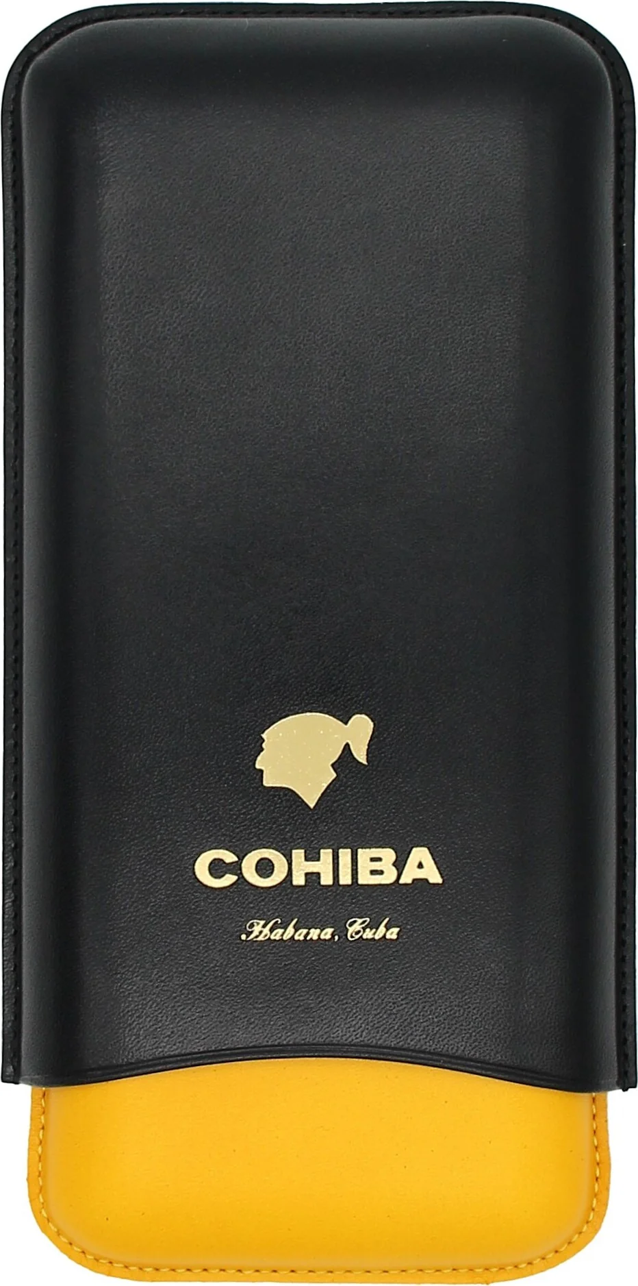 Etui à cigares Cohiba en cuir noir, jaune et blanc