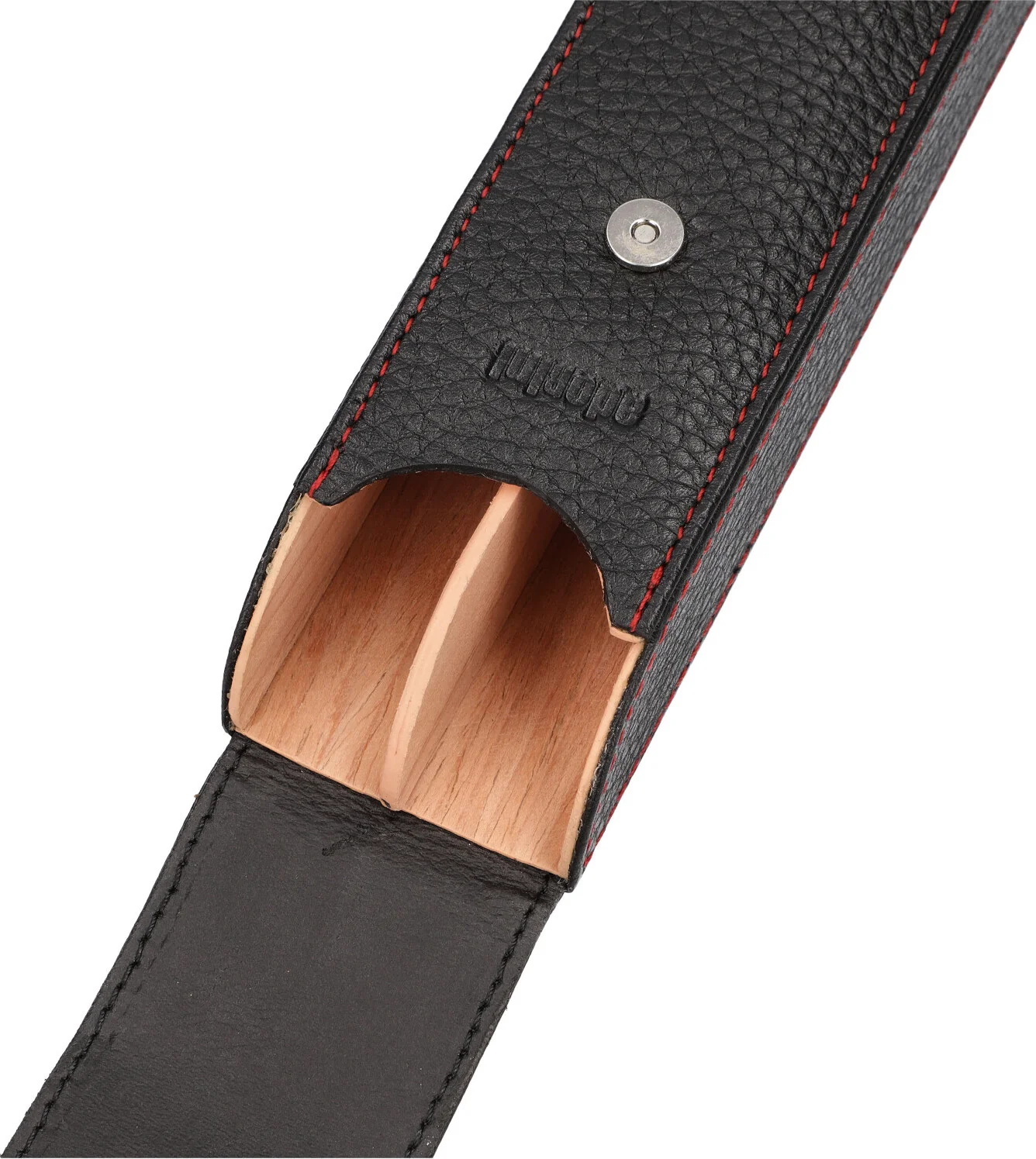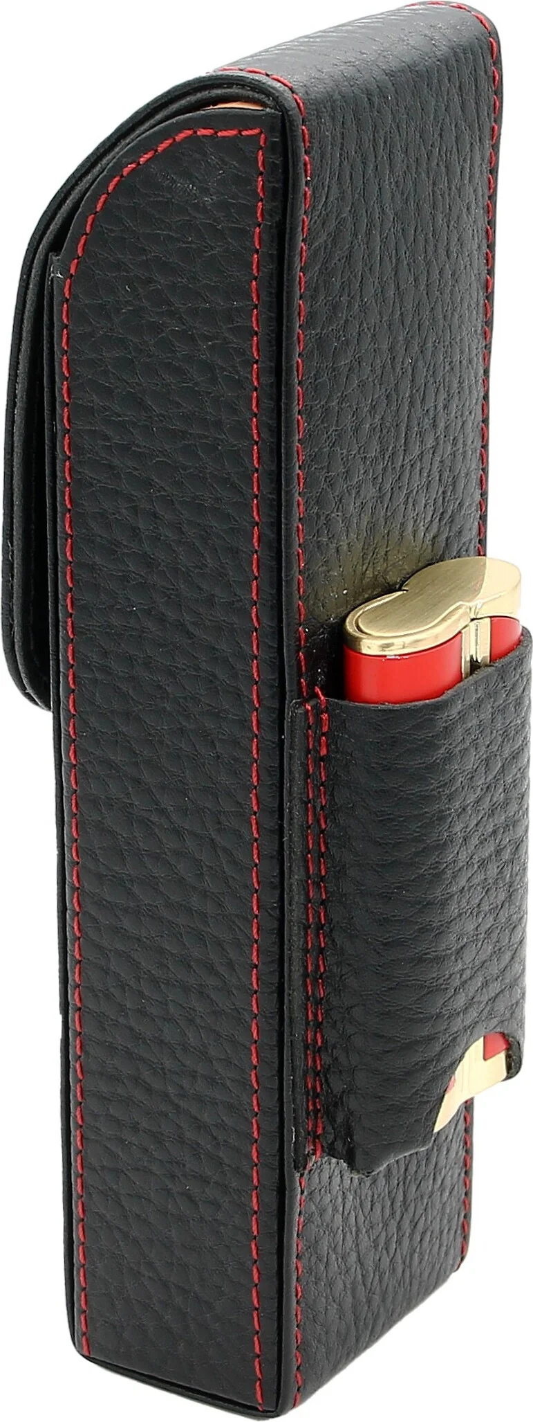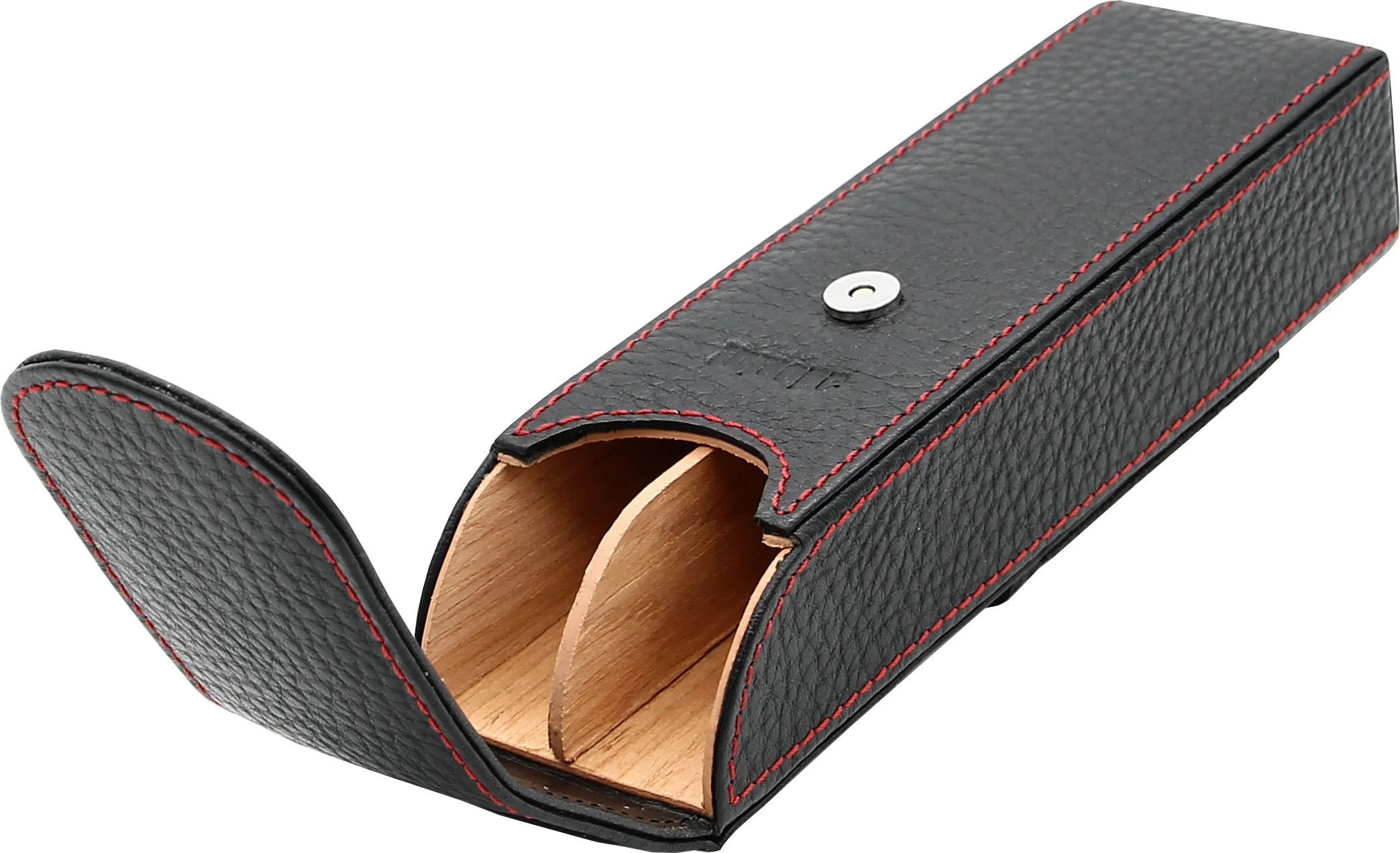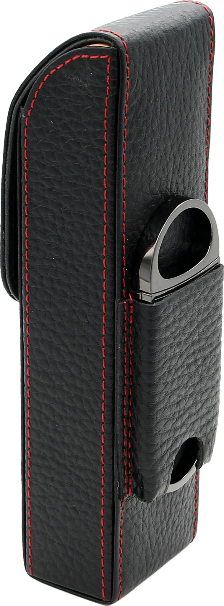 Étui à cigares de poche en cuir adorini pour 2 cigares, noir et rouge, avec pochette pour coupe-cigare ou briquet
