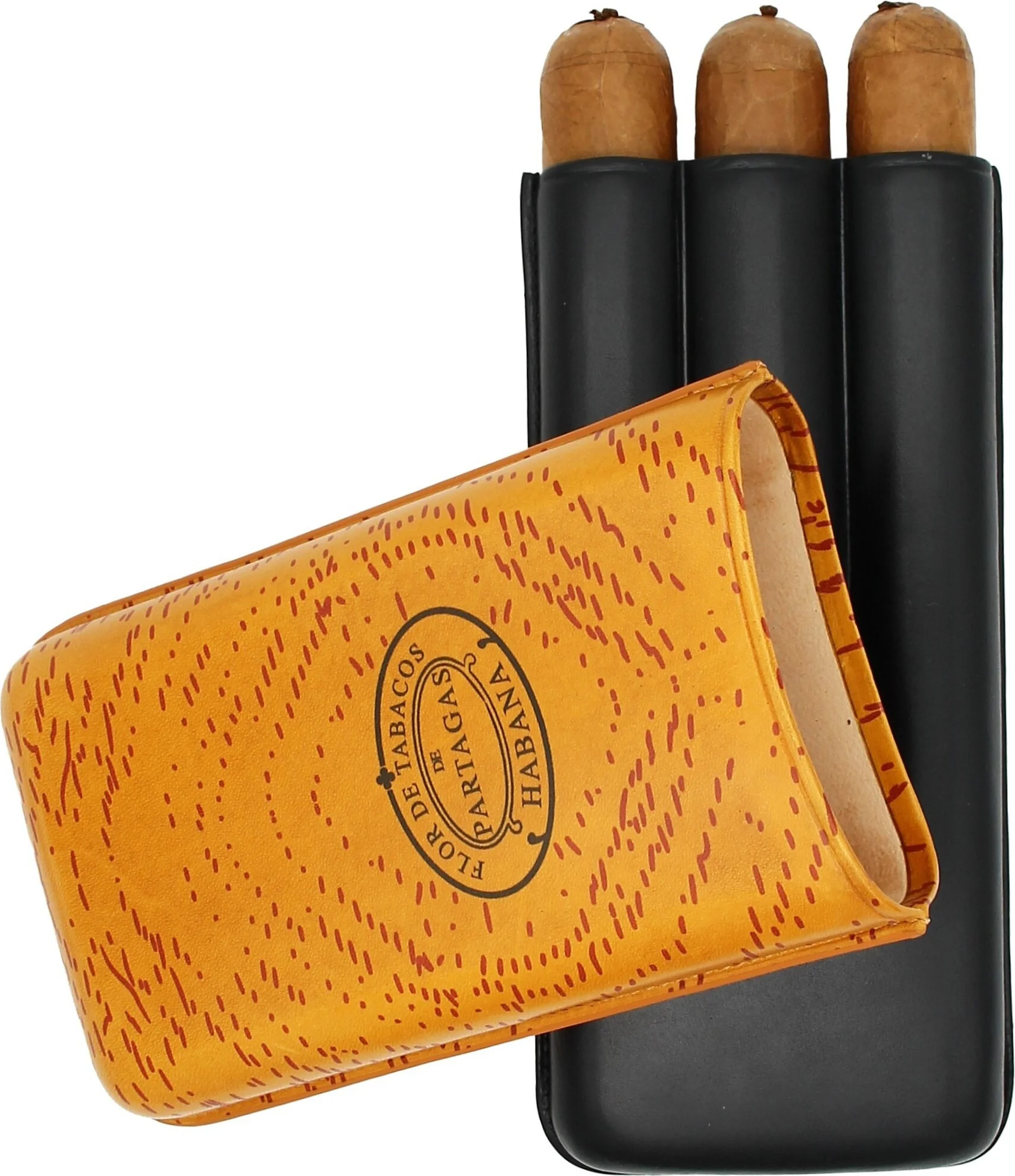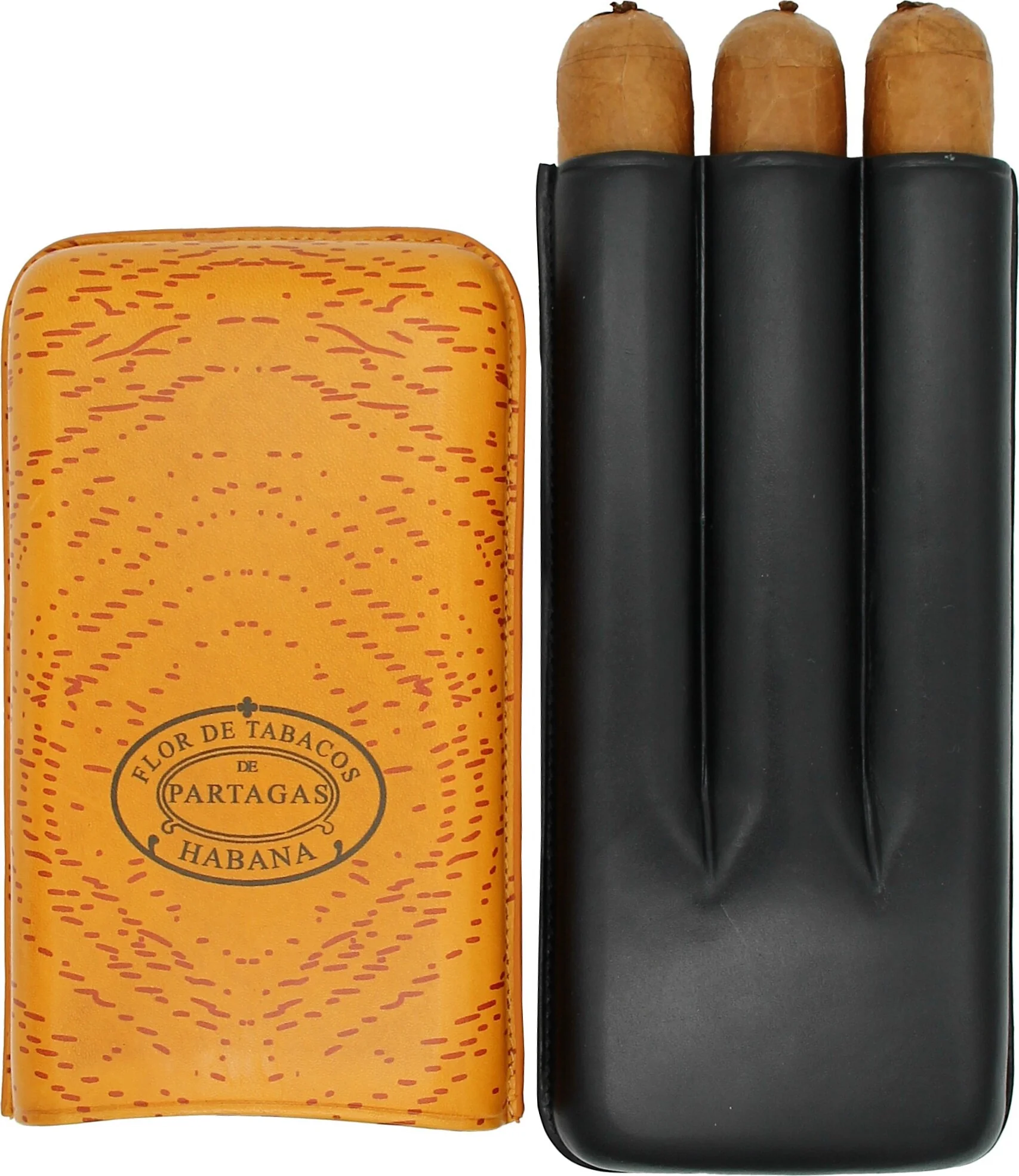 Étui à cigares Partagas Classic en cuir orange et noir, 3 pièces.