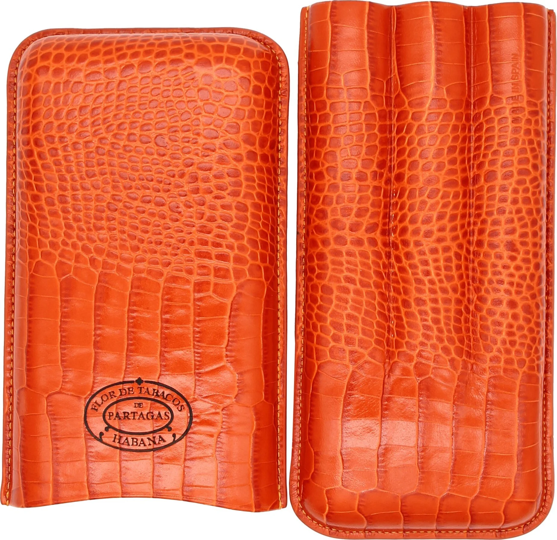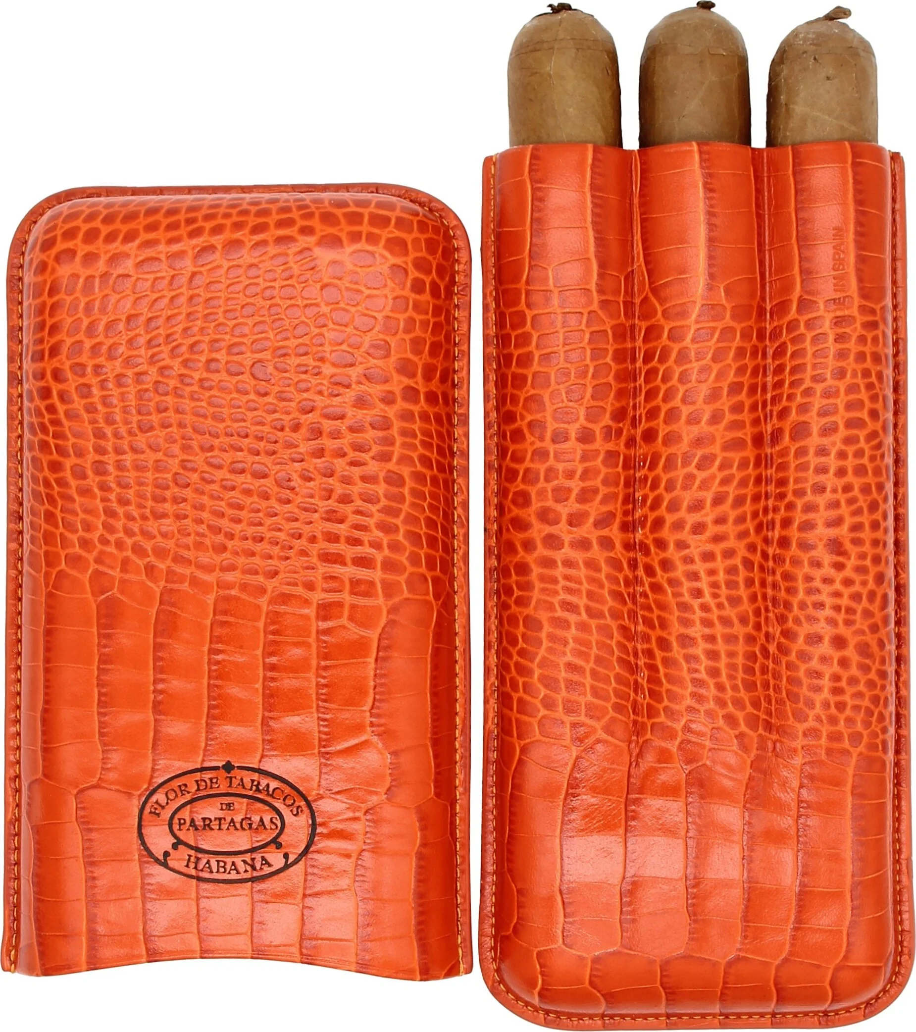 Étui à cigares Partagas Linea Classic en cuir orange, 3 pièces.