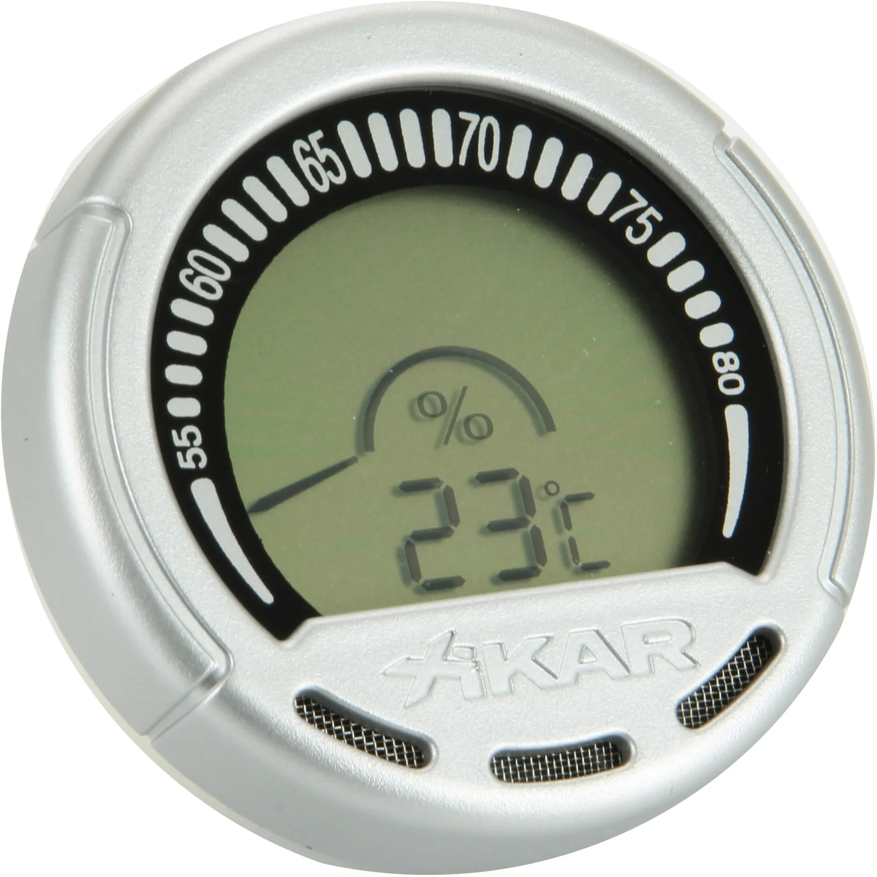 Une zone d'affichage plus large donne un look plus contemporain à votre cave à cigares, avec une fixation magnétique et un dos effilé, permettant à l'appareil de s'adapter dans presque tous les humidificateurs avec de la place pour un hygromètre standard de petite taille. La vérification de la température ne prend qu'un coup d'œil, et un affichage numérique à «cadran» intelligemment conçu simule le style analogique des hygromètres classiques avec une touche parfaitement moderne.