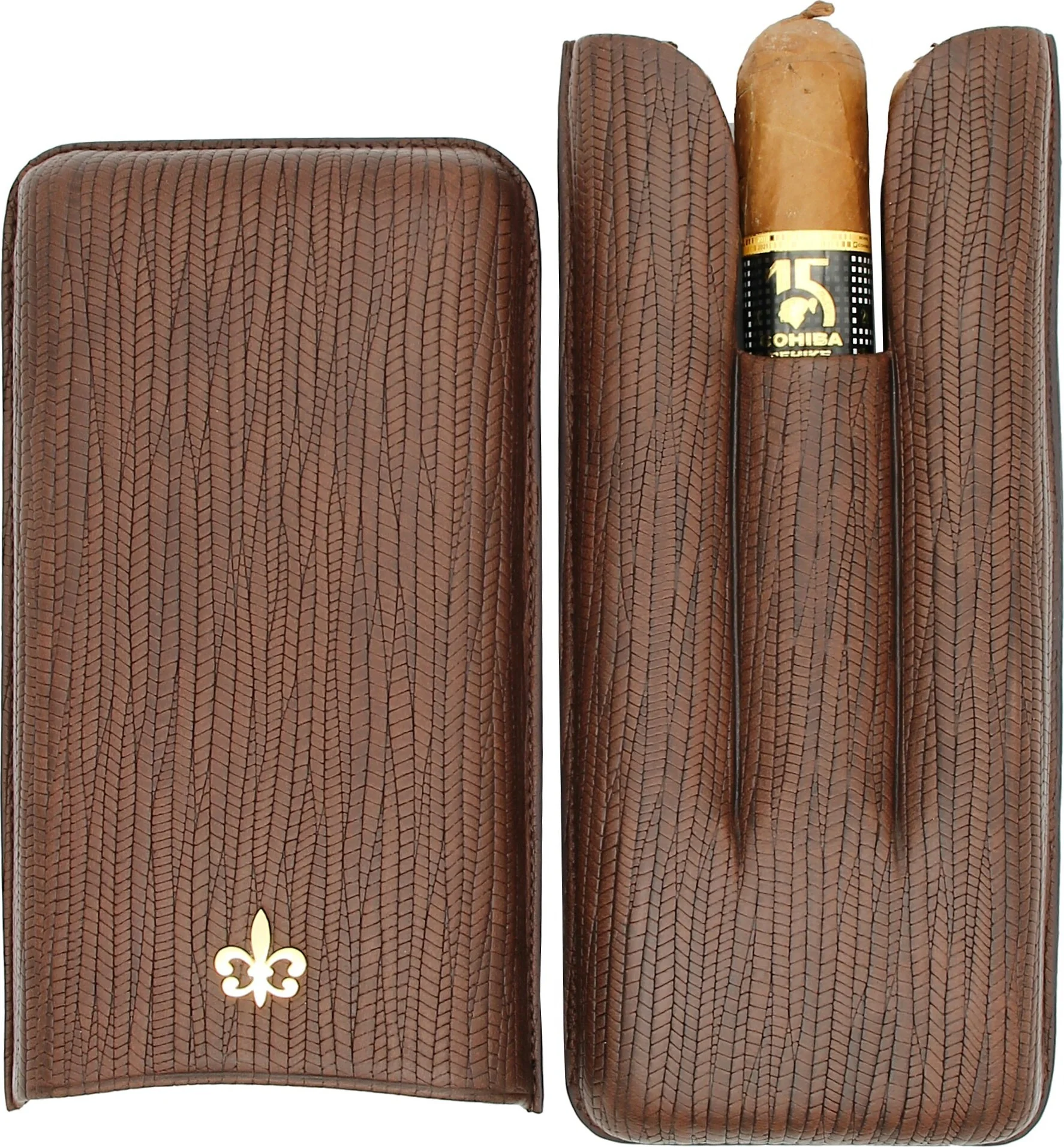 Étui à cigares Montecristo Fleur de Lis en cuir marron, 3 pièces.