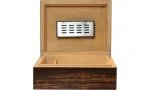 Une finition laquée givrée met magnifiquement en valeur les bruns clairs et foncés de l'exotique placage de makassar. Le grain de bois richement texturé ajoute une allure sophistiquée à n'importe quel décor tout en offrant un espace de stockage pour jusqu'à 35 cigares de taille Corona.