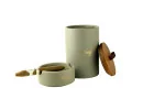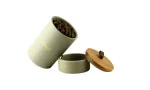 - Pot en porcelaine avec couvercle en bois de haute qualité et poignée en cuir élégante.