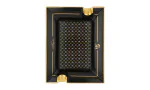 - **Design et matériaux :** Le cendrier est fini dans un noir profond avec des garnitures dorées. Il comporte deux généreux repose-cigares, offrant un emplacement élégant et pratique pour vos cigares.