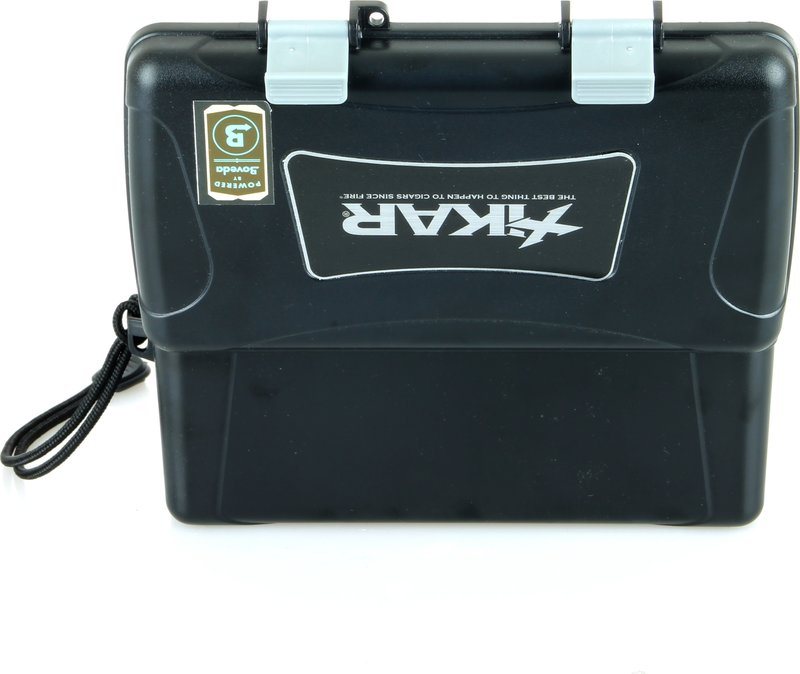Cet humidor de voyage pratique est construit en plastique ABS indéformable , qui se combine avec des charnières en acier inoxydable et des fermoirs robustes pour une protection étanche à l'air et à l'eau. Il y a même un anneau de verrouillage moulé, vous pouvez donc ajouter un cadenas pour protéger davantage vos cigares.