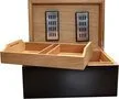Het deksel gaat met het grootste gemak open dankzij hoogwaardige scharnieren die een cederhouten interieur laten zien. Dikke corpusconstructie biedt extra sterkte en langdurige duurzaamheid. Met een uitschuifbaar dienblad en verdeler kunt u uw sigaren netjes opbergen, zodat u precies weet waar u heen moet als u klaar bent voor bepaalde rookwaar. Elke sigaar krijgt een constante vochtigheidsregeling door middel van twee zelfregulerende luchtbevochtigers. Voeg gedestilleerd water toe als dat nodig is, en u kunt met plezier genieten.