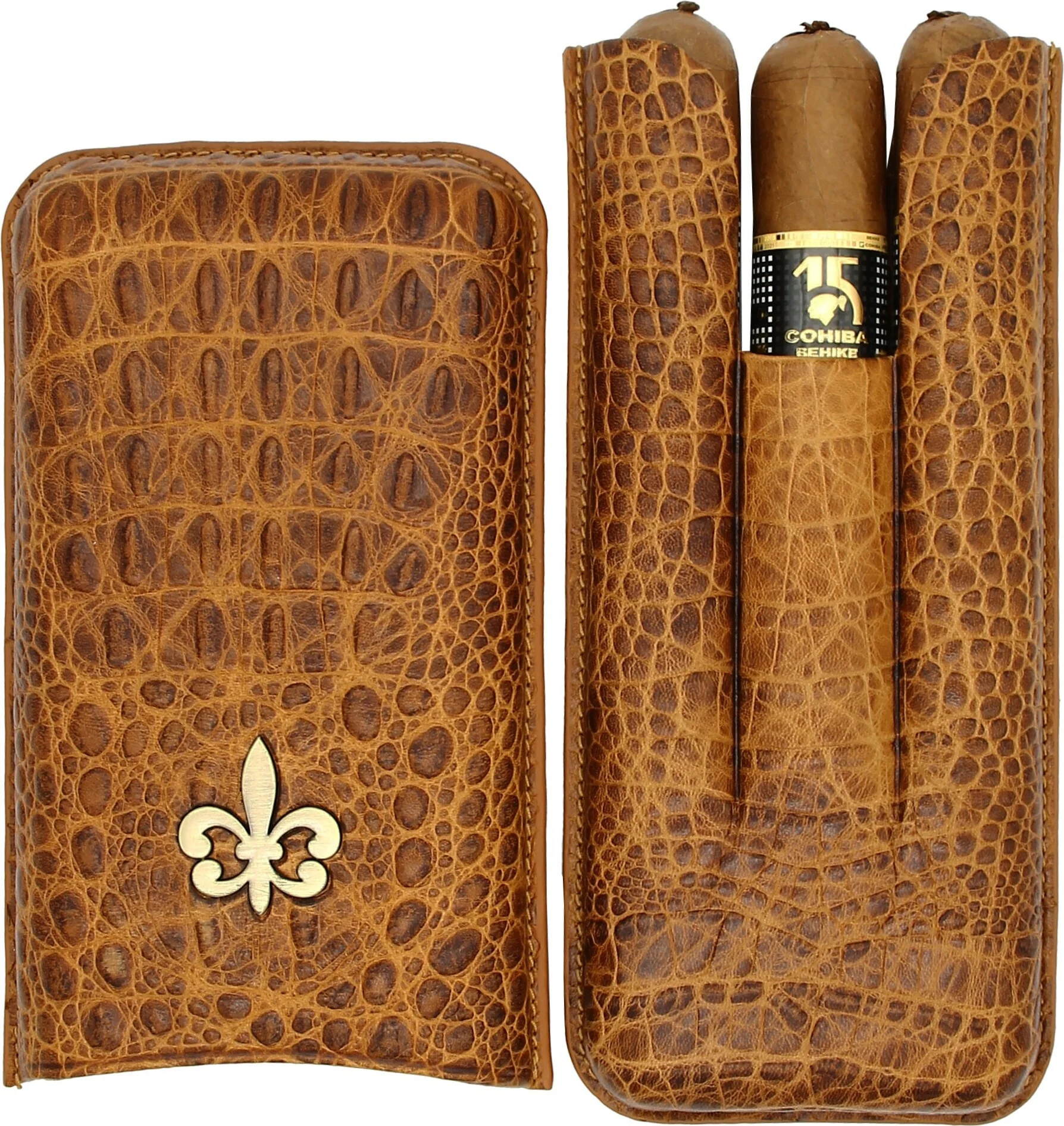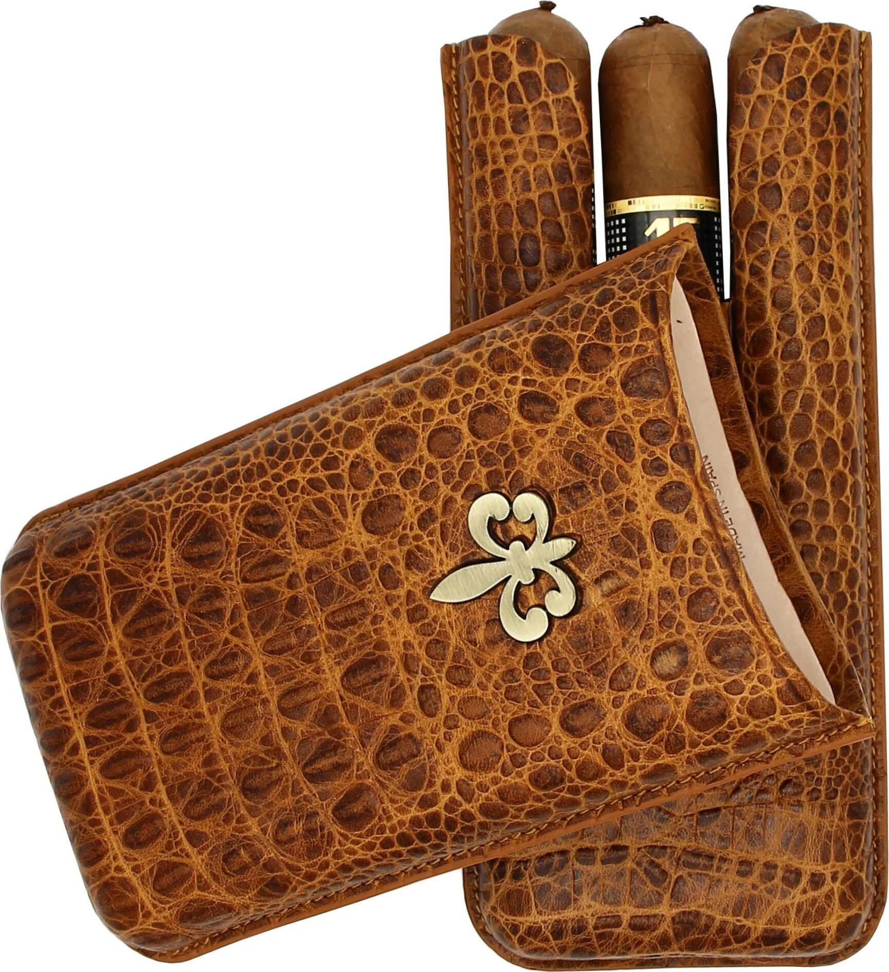 Montecristo Fleur de Lis Sigarenkoker Leer Croco Bruin 3 stuks.