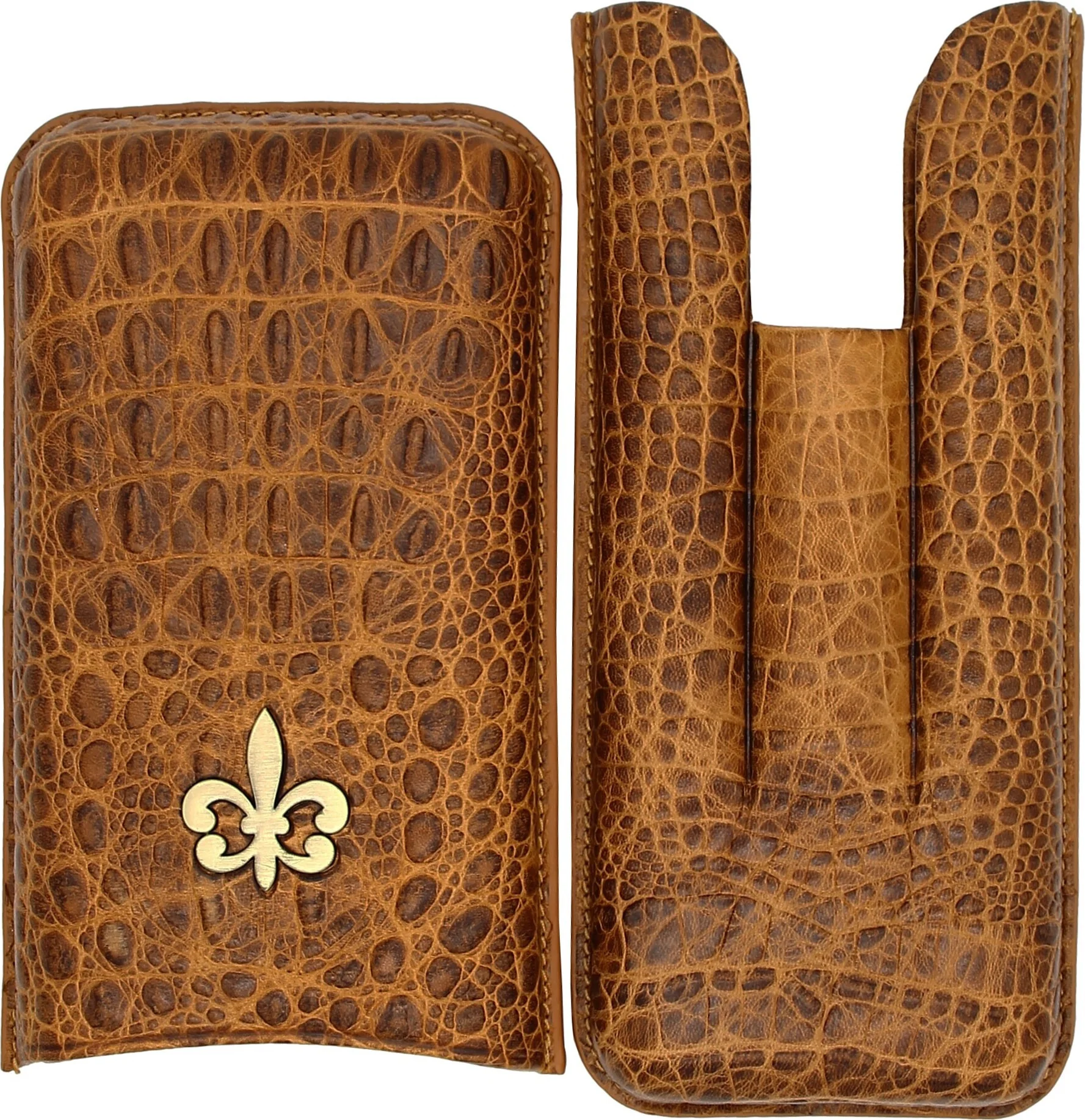 Montecristo Fleur de Lis Leren Sigarenkoker, Krokodillenpatroon, Bruin