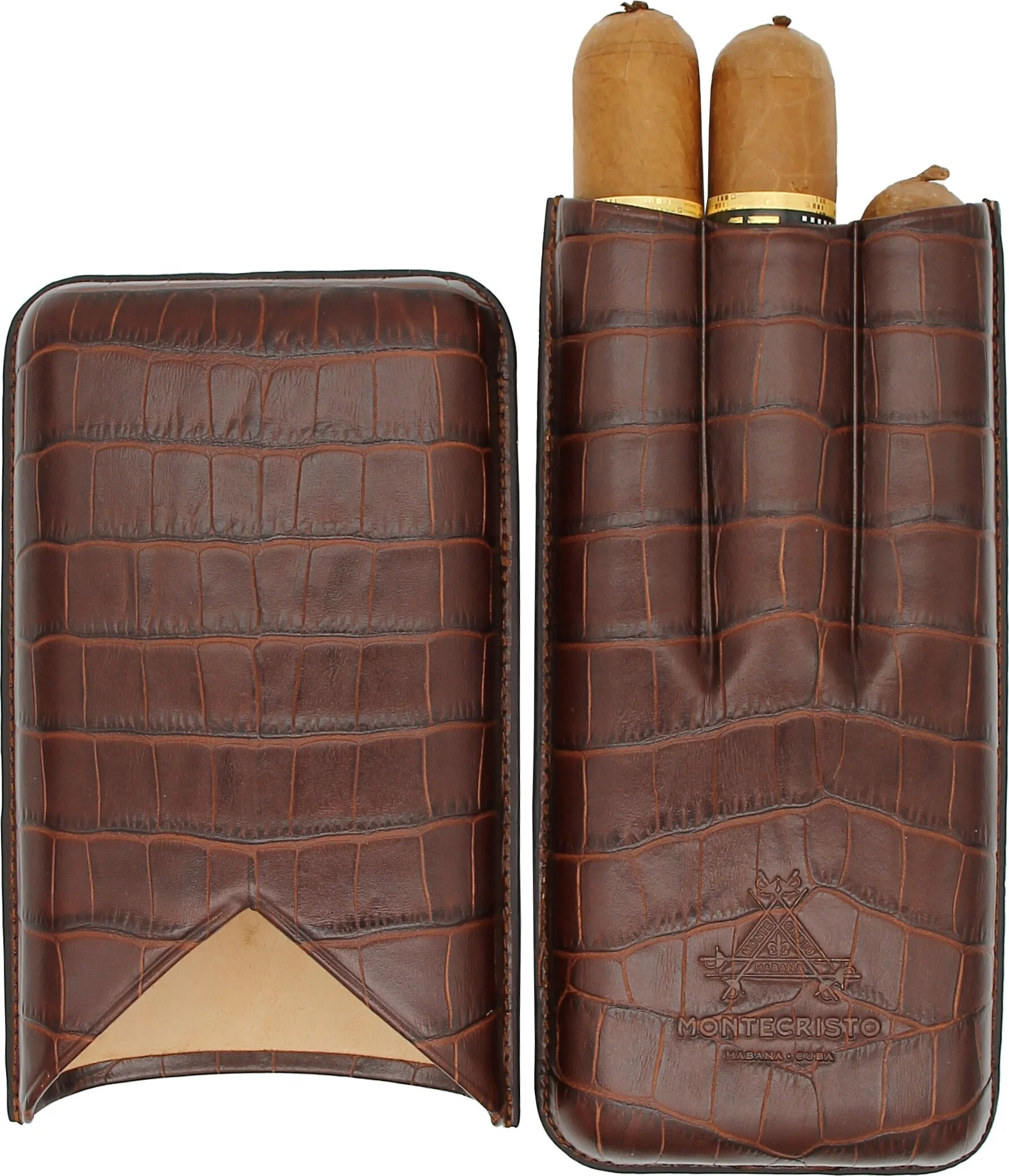 Montecristo Leren Sigarenkoker, Bruin, voor 3 Sigaren