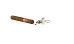 De sigarenboor wordt gekenmerkt door zijn kleine en handzame formaat. Met een lengte van **4,5 cm** en een diameter van **1,2 cm** (zonder sleutelhanger) is hij extreem ruimtebesparend. Met de **6 cm lange sleutelhanger** kunt u hem veilig aan sleutelhangers of tassen bevestigen.