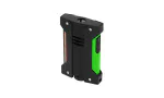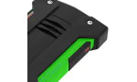 - Matzwarte behuizing van spuitgegoten metaal met een heldergroen accent