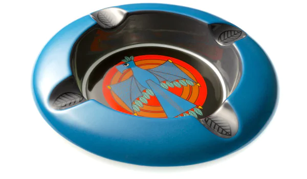 **Over de asbak:** De asbak heeft een kenmerkende blauwe kleur, die de weidse lucht en de mythische aard van de Thunderbird weerspiegelt. De Totem Thunderbird Asbak, met een diameter van 21,5 cm, een hoogte van 4,5 cm en een glanzende afwerking, staat als een fascinerend stuk geïnspireerd door een legendarisch schepsel. De vier sigarensteunen voegen een praktisch en stijlvol element toe, waardoor het een uitzonderlijk accessoire is voor liefhebbers die op zoek zijn naar een vleugje mythe en verfijning in hun sigarenervaring.
