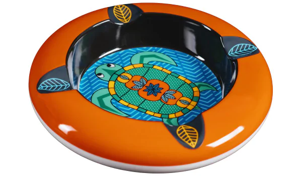 De Totem Asbak Wijze Schildpad, in glanzend oranje en gemaakt van het fijnste porselein, is een opvallende toevoeging aan uw collectie. Met een diameter van 21,5 cm en een hoogte van 4,5 cm combineert hij functionaliteit met artistieke elegantie.