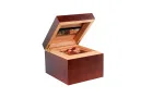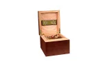 De Vedado Humidor wordt geleverd met een passieve luchtbevochtiger in goud. Deze luchtbevochtiger is gebaseerd op acryl polymeer kristallen die bevochtigd moeten worden met gedestilleerd water om een stabiele luchtvochtigheid te garanderen. Dankzij de meegeleverde magneten met verwijderbare lijm kan de luchtbevochtiger stevig aan het deksel worden bevestigd.