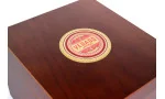 De Vedado Humidor maakt indruk met zijn elegante ontwerp en hoogwaardige afwerking. De warme bruinrode tinten geven hem een klassieke elegantie, terwijl de ingelegde Vedado plaquette op het deksel, met zijn verhoogde textuur, een uniek detail toevoegt.