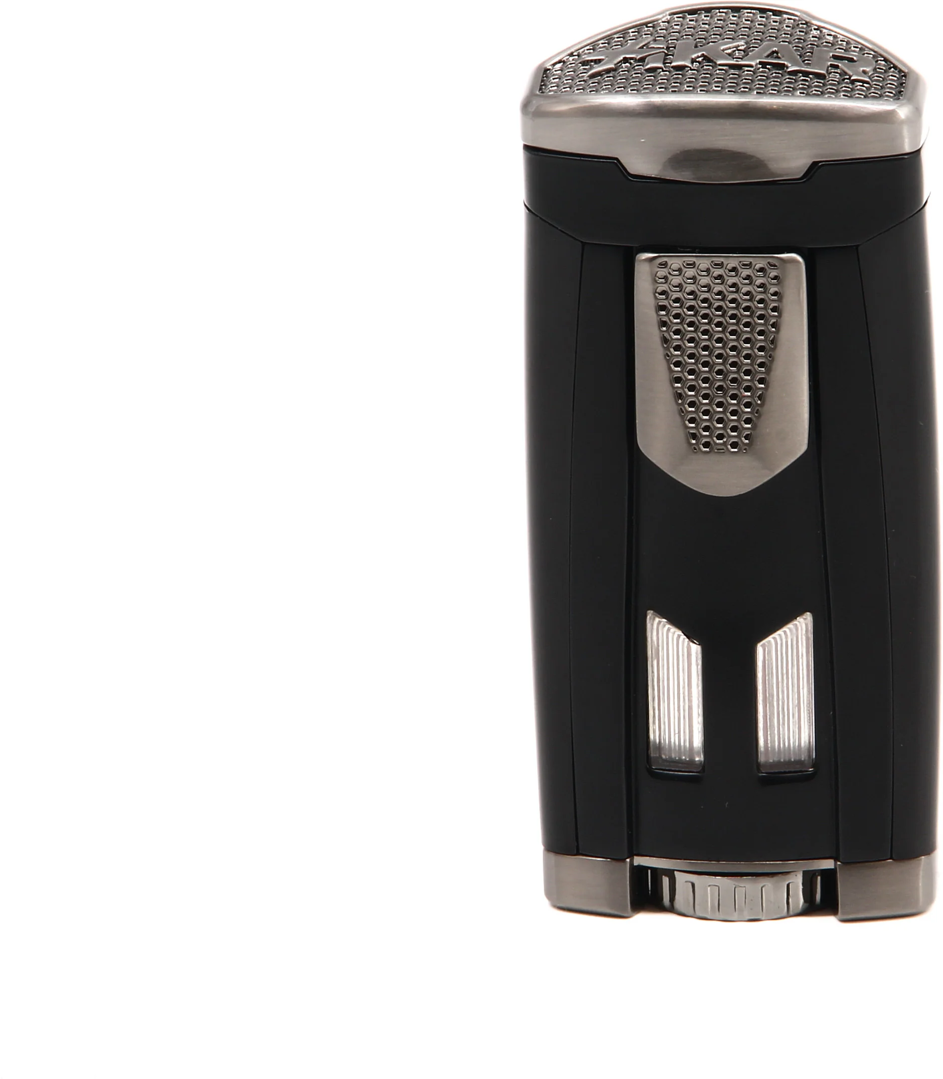 De HP3, ook bekend als de Hoogwaardige Drievoudige Vlam, biedt een uitgesproken moderne uitstraling met zijn klassieke matzwarte afwerking die contrasteert met chromen accenten. Door de slanke, ergonomische contouren is de aansteker zowel comfortabel om vast te houden als opvallend. Het is een echte knaller!
