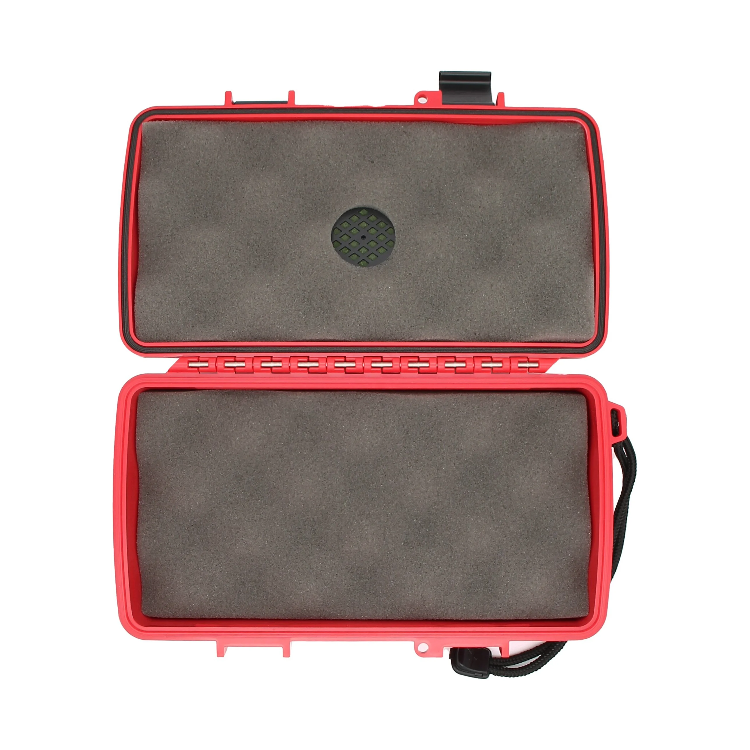 Deze klassieke reishumidor, hier afgebeeld in opvallend rood, is gemaakt van onbreekbaar ABS-kunststof, zodat u zich geen zorgen hoeft te maken over schade aan de inhoud. De roestvrijstalen scharnieren en stevige sluitingen zorgen voor een perfecte lucht- en waterdichte afsluiting. Met een sluitring kunt u een hangslot bevestigen, zodat u er zeker van kunt zijn dat u de enige bent die uw schatkist opent.