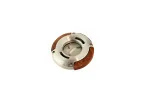 De XO cutter heeft een centrale drukknop die de roestvrije, scherpe dubbele messen vrijgeeft. De messen bewegen nauwkeurig met behulp van een veer- en tandwielsysteem dat zichtbaar is door openingen in de behuizing. Deze aanblik doet denken aan een uurwerk met een glazen kast en onderstreept de technische verfijning van het ontwerp.